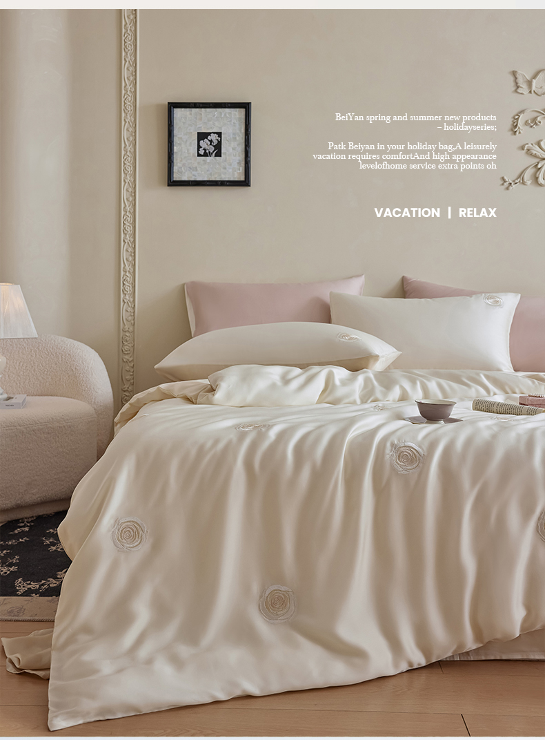当前位置: 91家纺网 > 商品网购 > 床品套件 > 四件套 > 莱赛尔四件套 > 简纯主义 2025新款邂逅山茶天丝四件套 邂逅山茶-香槟