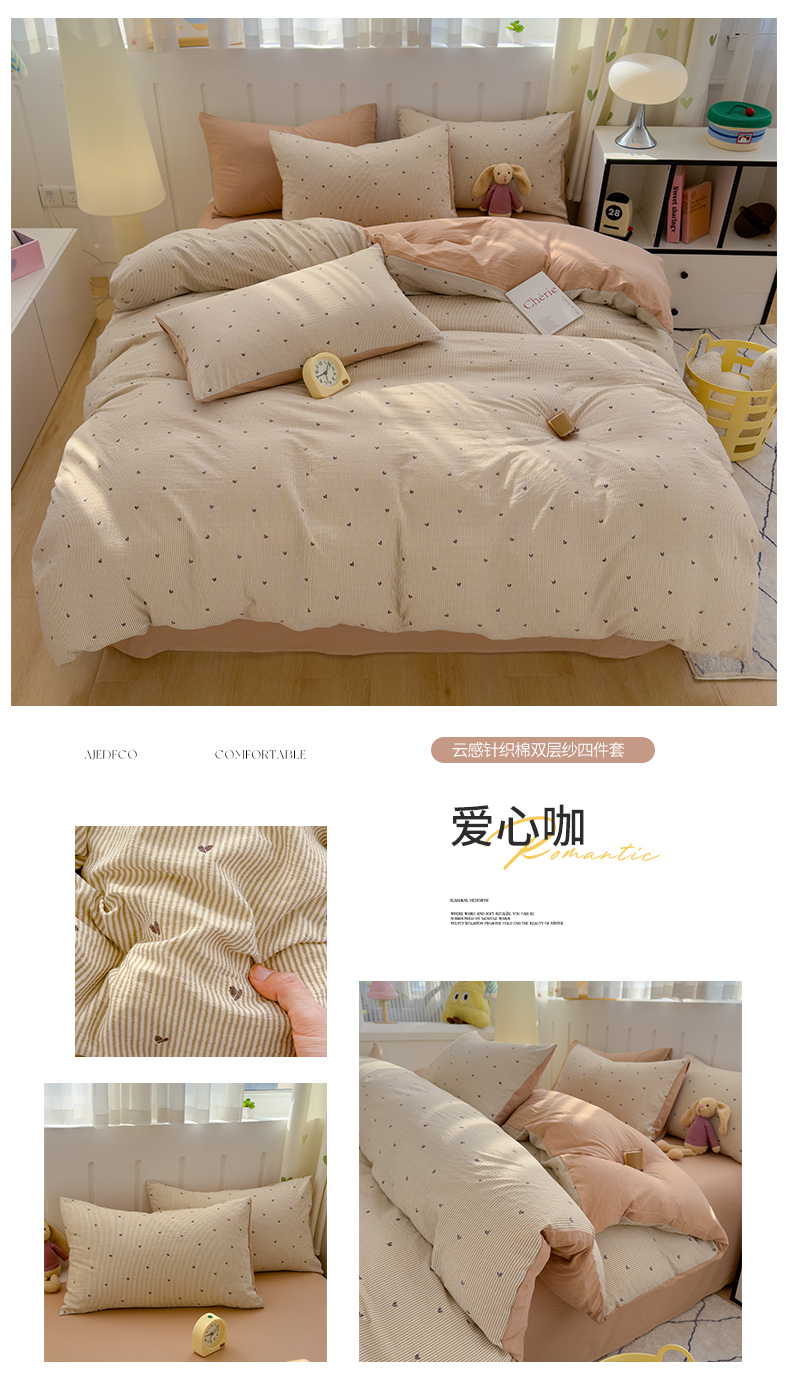 当前位置: 91家纺网 > 商品网购 > 床品套件 > 四件套 > 其它四件套 > 宏源家纺 2025新款A类超柔有氧云感双层纱四件套 爱心咖