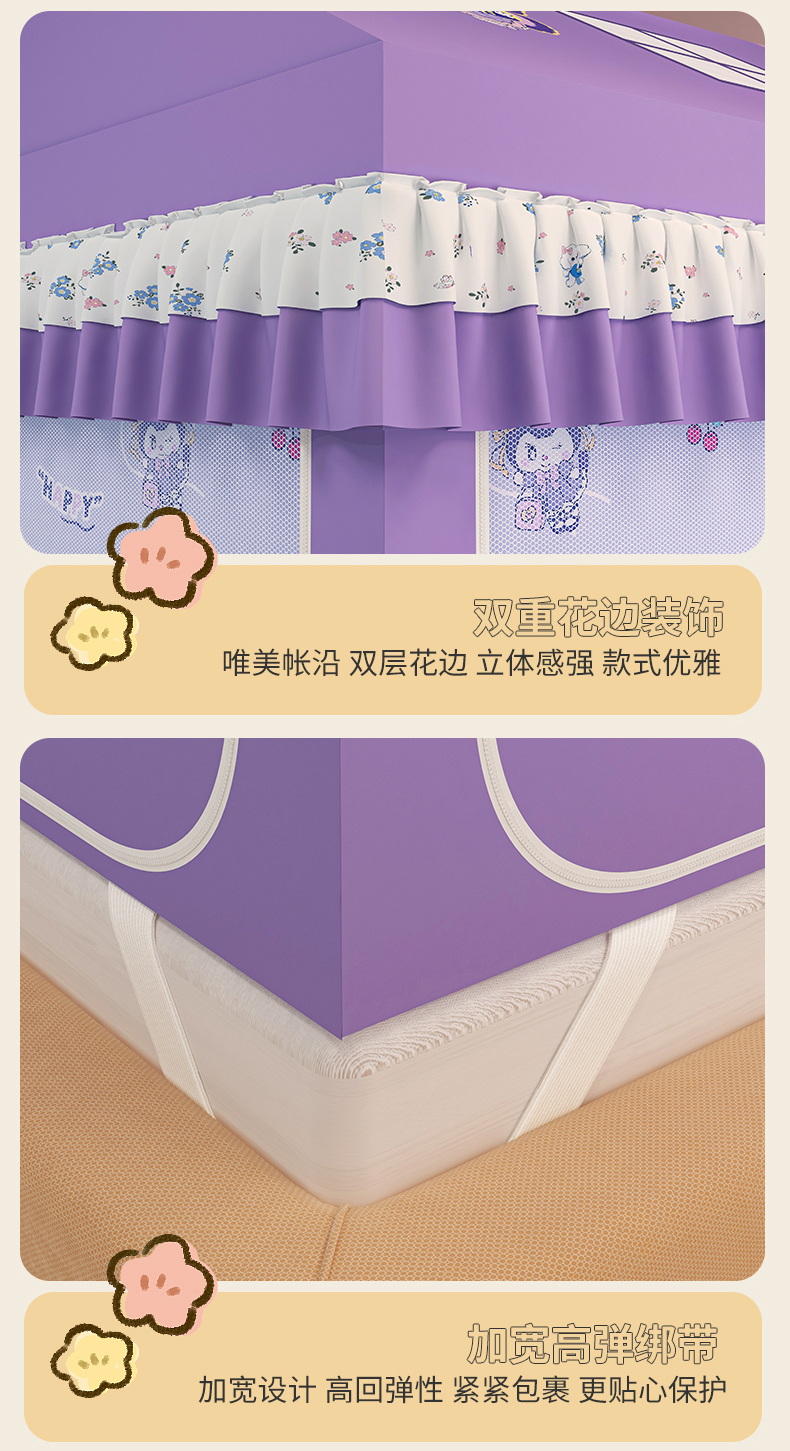 当前位置: 91家纺网 > 商品网购 > 床上用品 > 蚊帐 > 坐床式蚊帐 > 迪凡保罗蚊帐 2025新款2505城堡款房型遮光防摔坐床蚊帐 紫色甜心