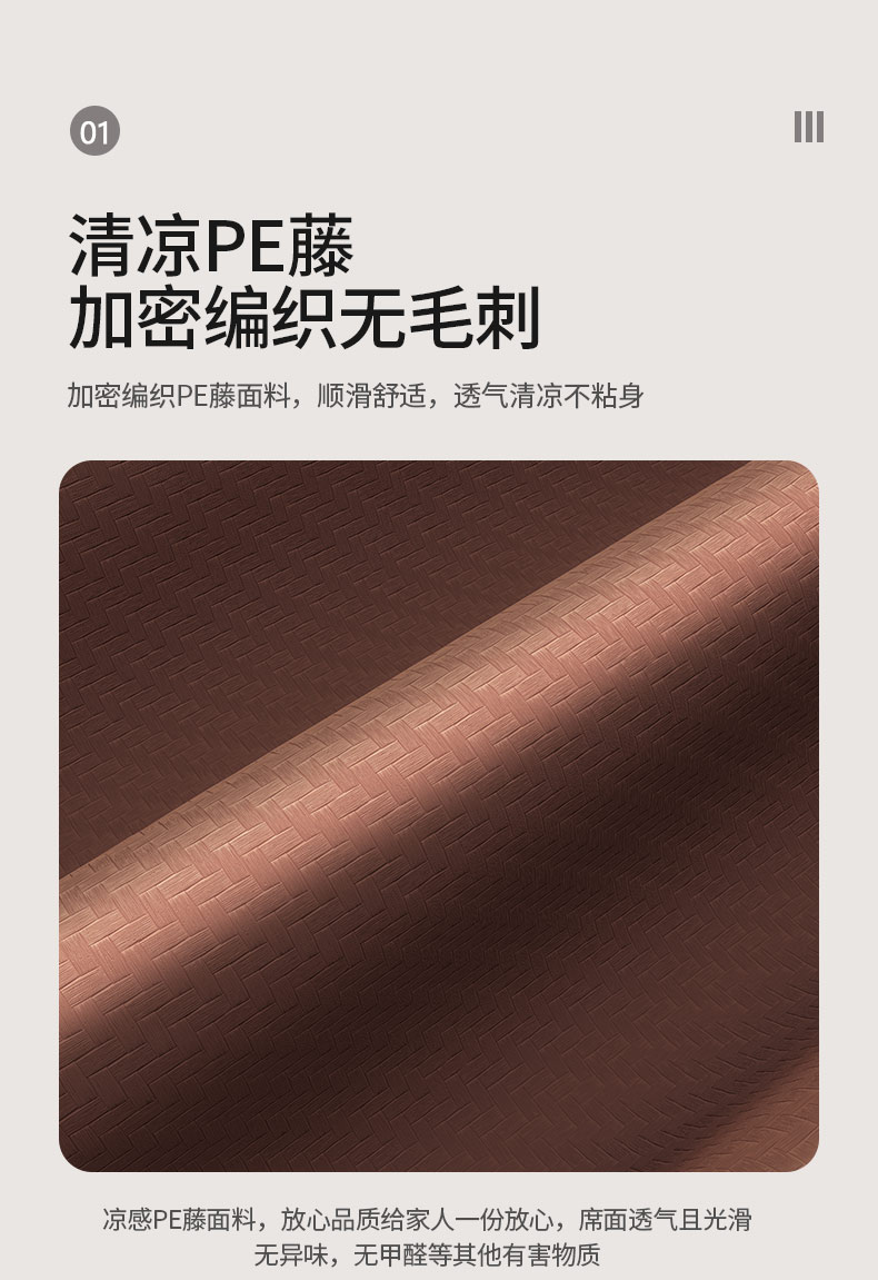 当前位置: 91家纺网 > 商品网购 > 床上用品 > 凉席 > 藤席 > 福来临家纺 2025新款凉感PE藤席 PE藤席-棕