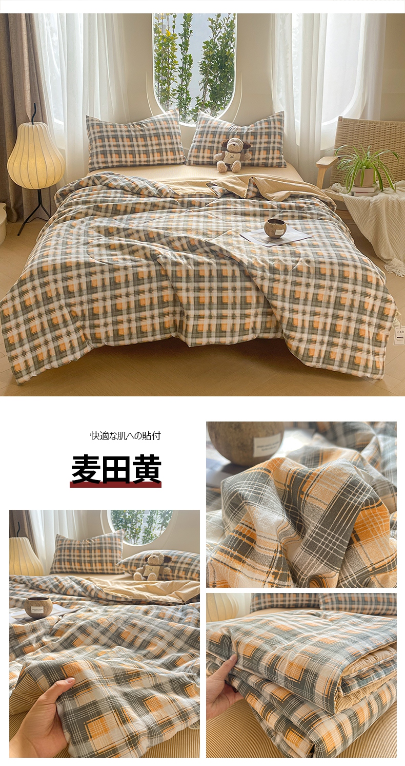 商品名称:老帅的工厂店 2025新款云朵棉无印风格子夏被 麦田黄