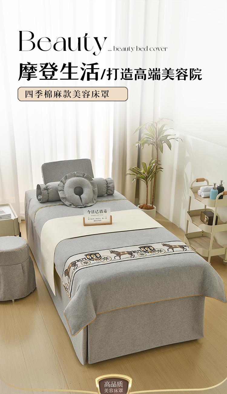 (总)梦来美家纺 2025新款彩棉麻美 容床罩(控价175元),典雅粉配绿,典雅灰,典雅卡其,典雅绿,典雅米白,典雅米白配粉,典雅米白配灰,典雅米白配绿,典雅浅咖,樱花粉