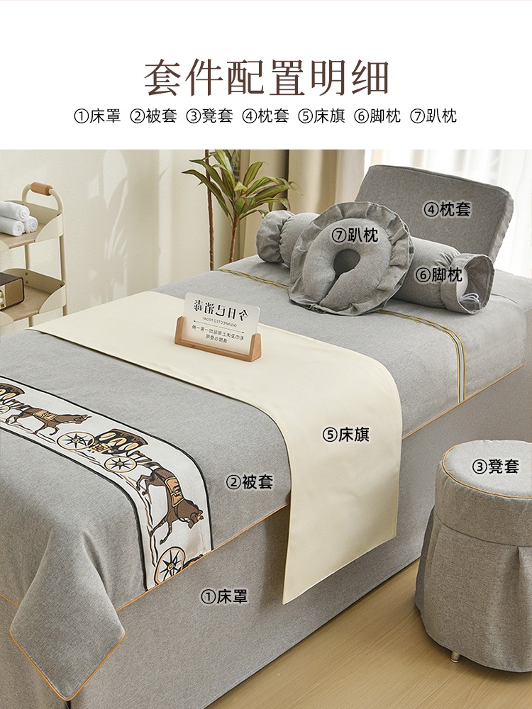(总)梦来美家纺 2025新款美 容床罩(控价175元)-马到成功,米白配咖,米白配绿,米白配浅灰,浅灰,浅咖,浅绿,深咖