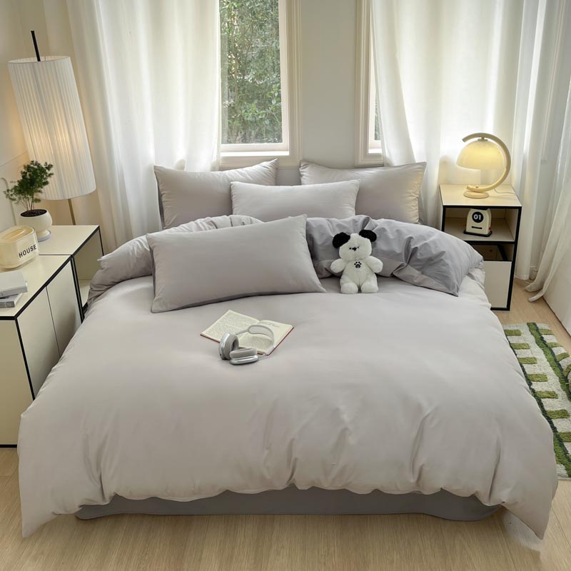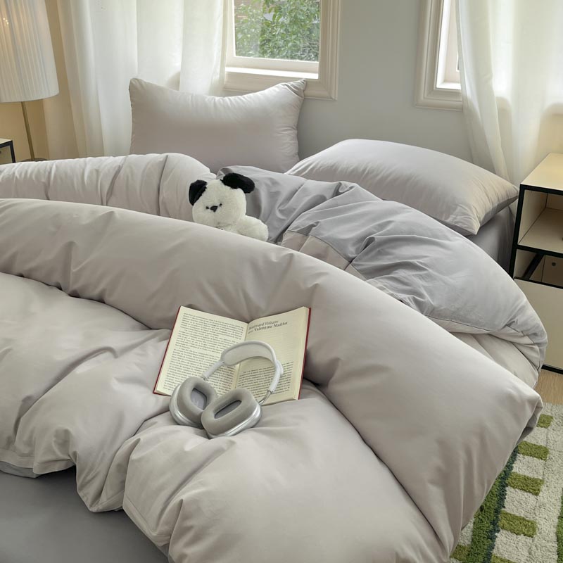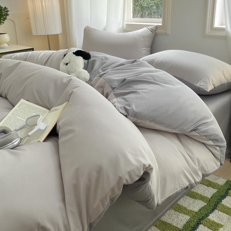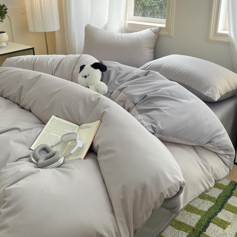 当前位置: 91家纺网 > 商品网购 > 床品套件 > 四件套 > 全棉普通四件套 > 泽西家纺2025新款A类全棉双拼纯色纯棉单被套 浅灰+深灰