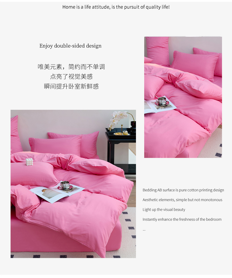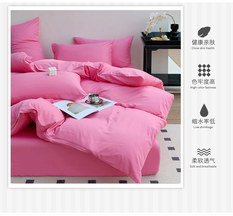 (总)期遇2025新款全棉13374纯色四件套,粉玉,海棠红,幻影灰,橘黄,卡其,嫩绿,苹果绿,青蓝,香芋紫,洋红
