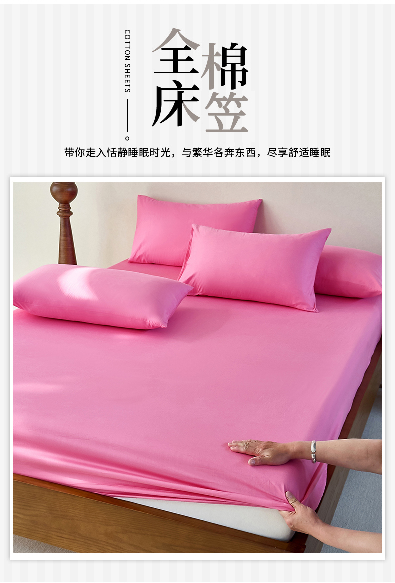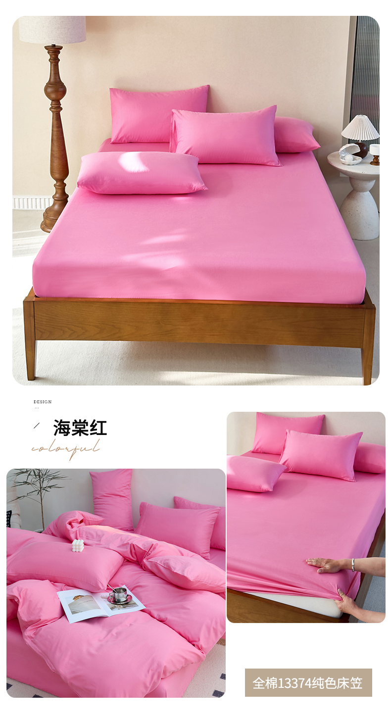 (总)期遇2025新款13374纯色全棉床笠,粉玉,海棠红,幻影灰,橘黄,卡其,嫩绿,苹果绿,青蓝,香芋紫,洋红