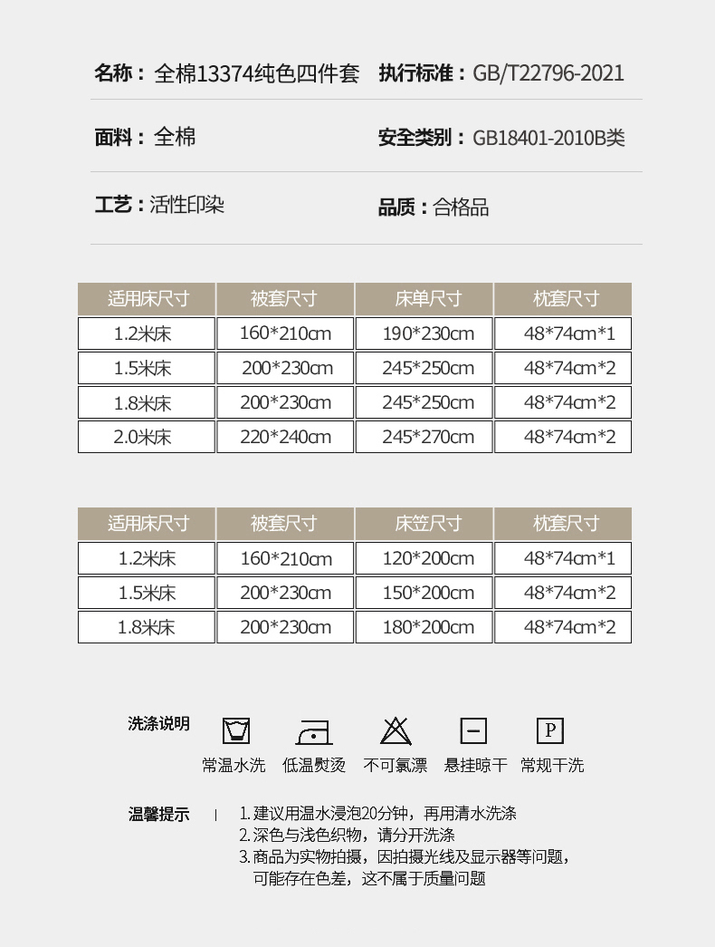 商品名称:期遇2025新款全棉13374纯色四件套 卡其