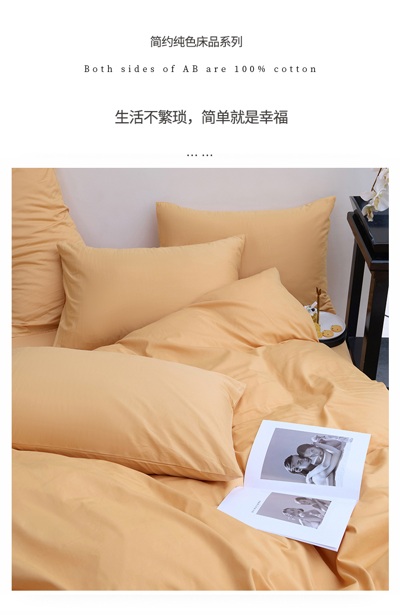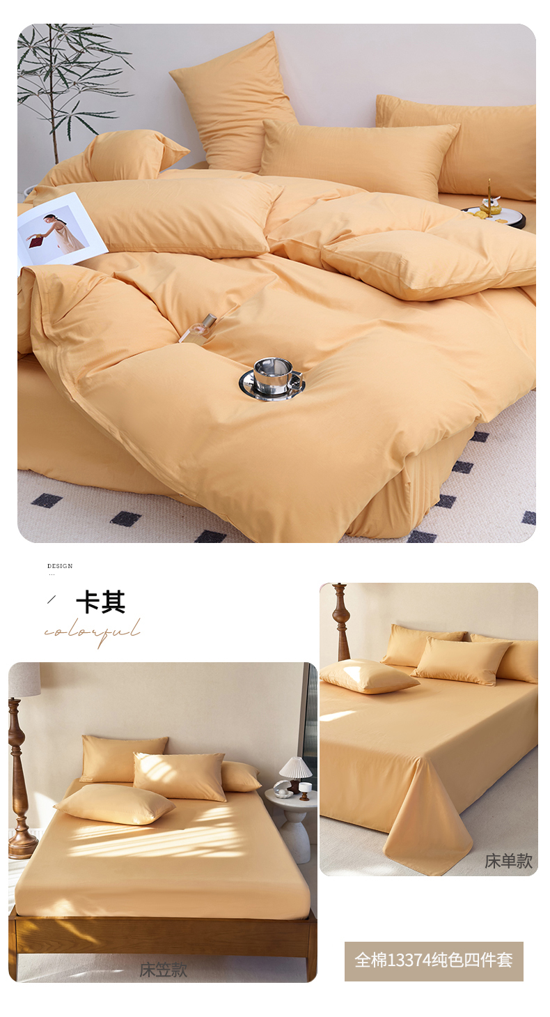 (总)期遇2025新款全棉13374纯色四件套,粉玉,海棠红,幻影灰,橘黄,卡其,嫩绿,苹果绿,青蓝,香芋紫,洋红
