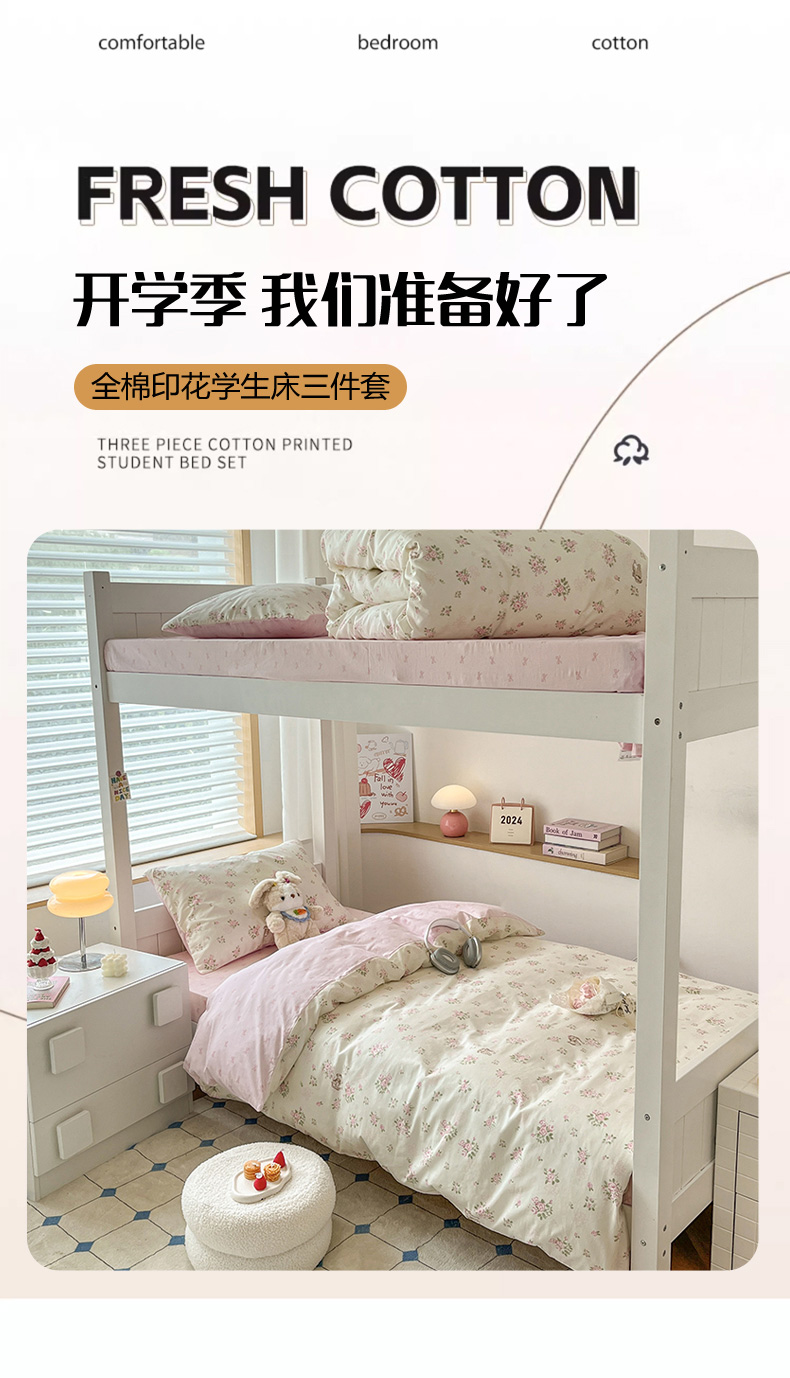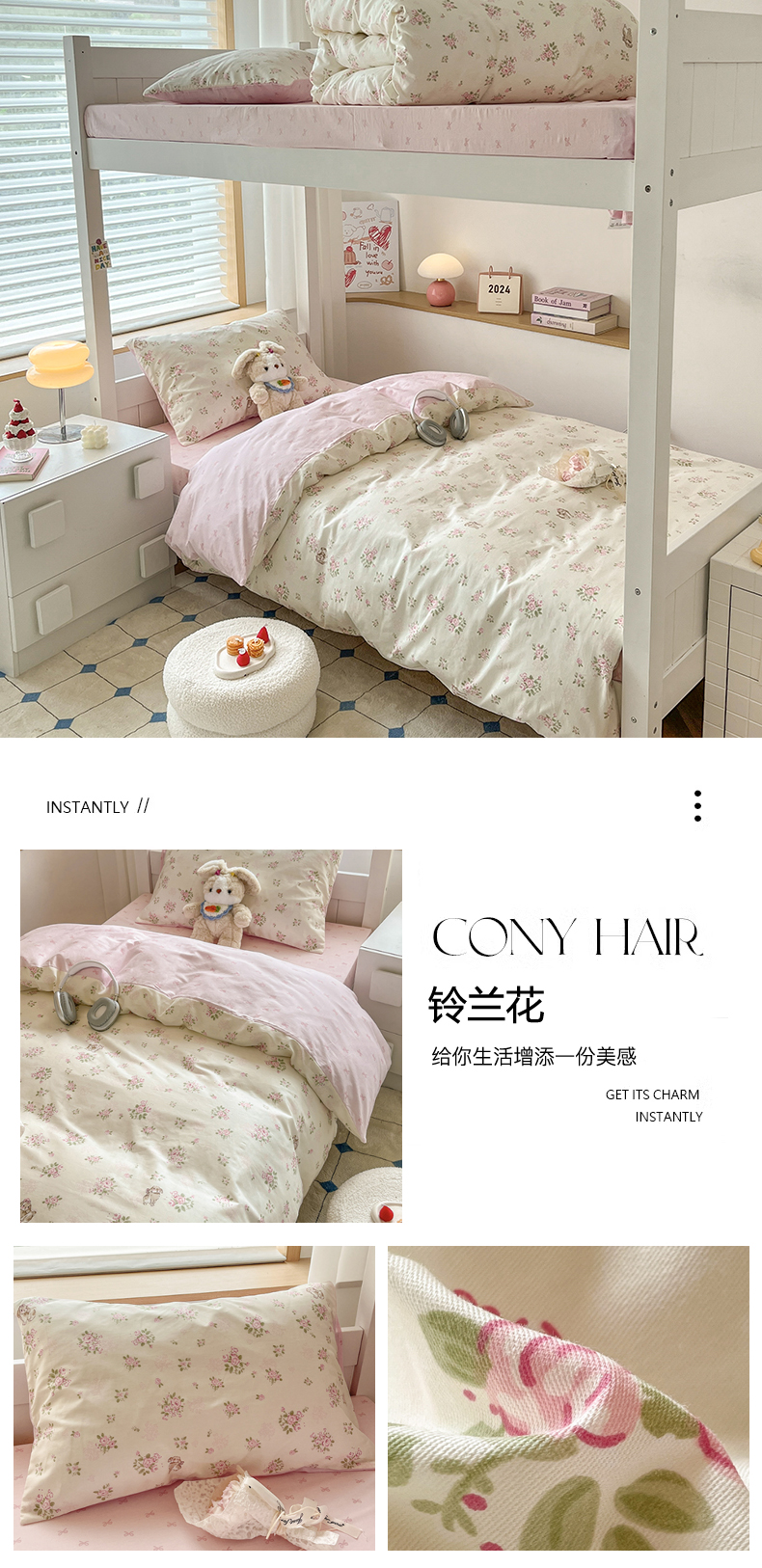 当前位置: 91家纺网 > 商品网购 > 床品套件 > 三件套 > 慕尚家纺 2025新款全棉印花学生三件套套件 铃兰花