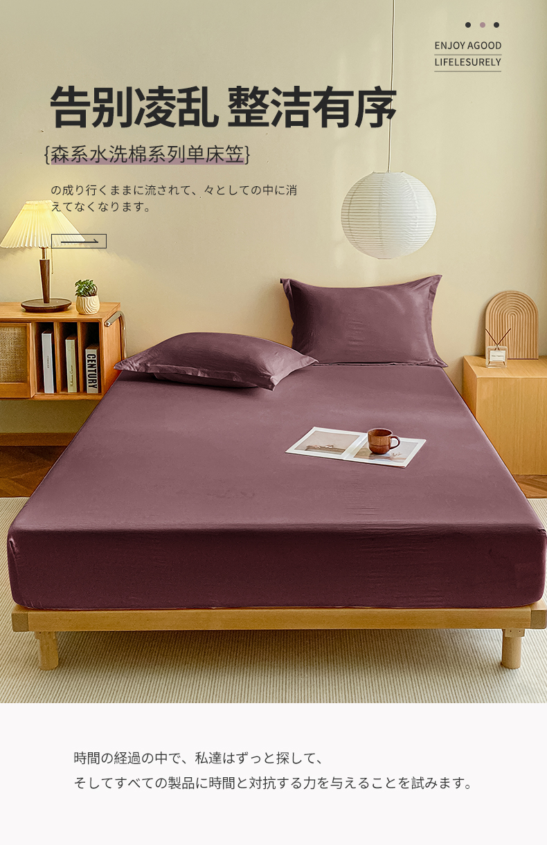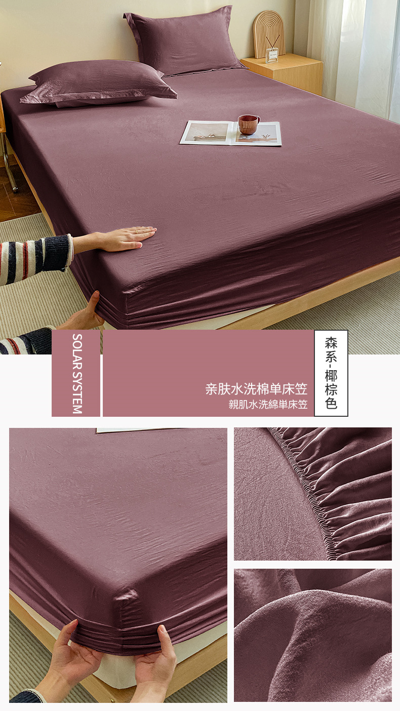 恬澳家纺 2025新款森系水洗棉无印风单床笠场景三 森系-椰棕色