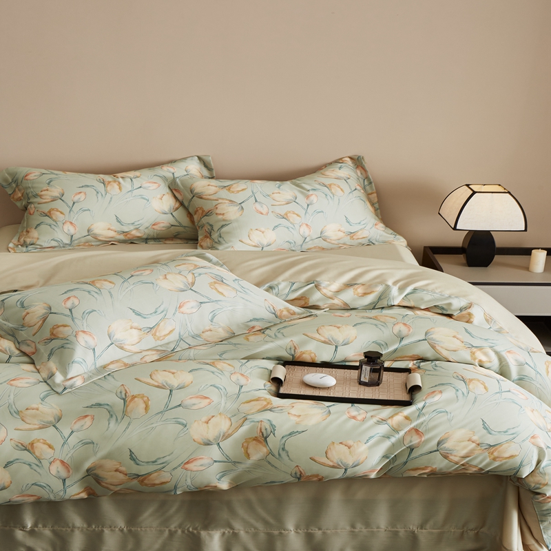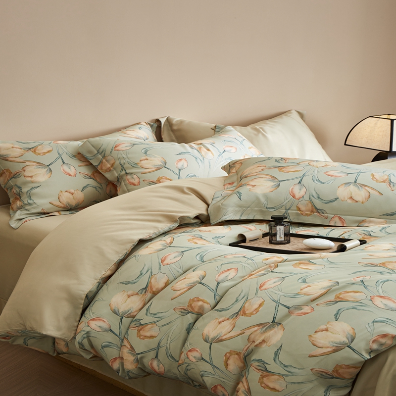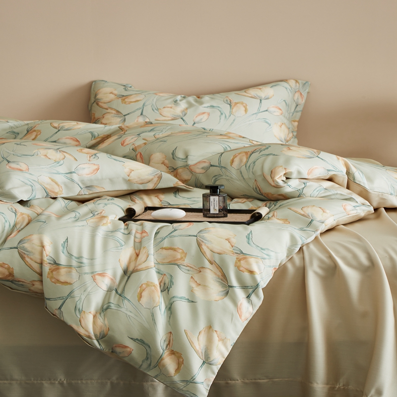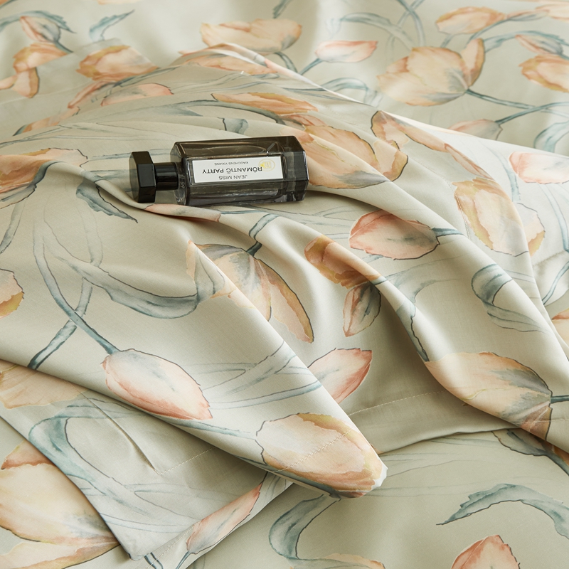 商品名称:顾家家居 2025新款莱塞尔数码印花四件套 林间蜜杏