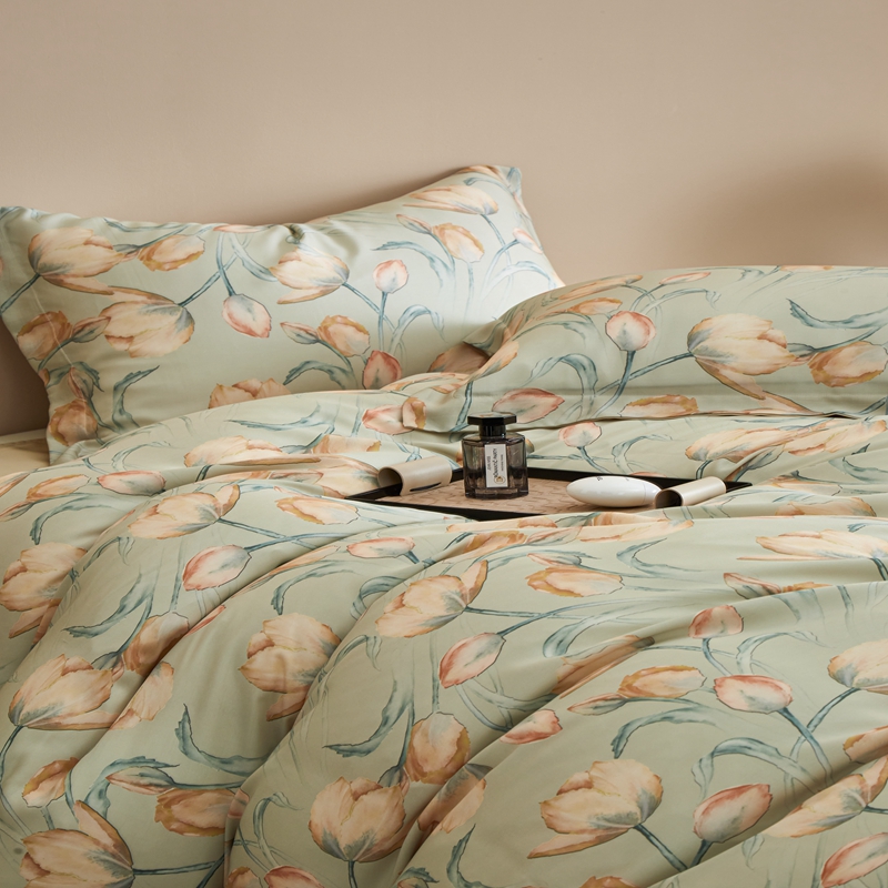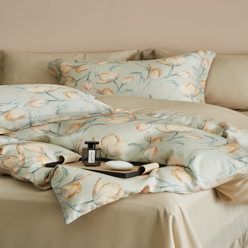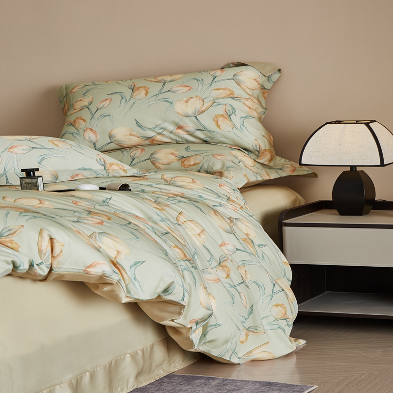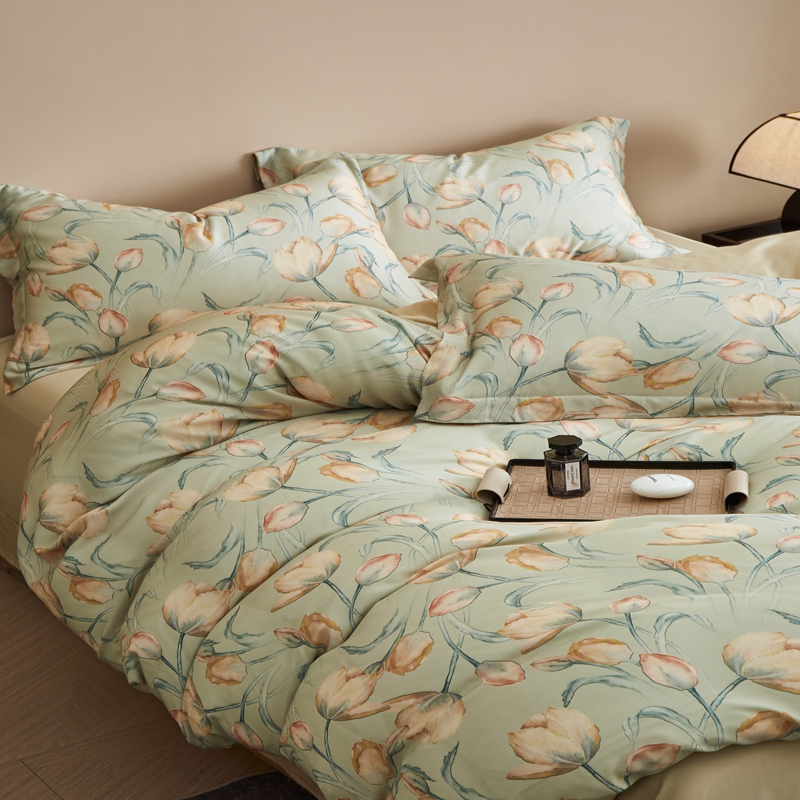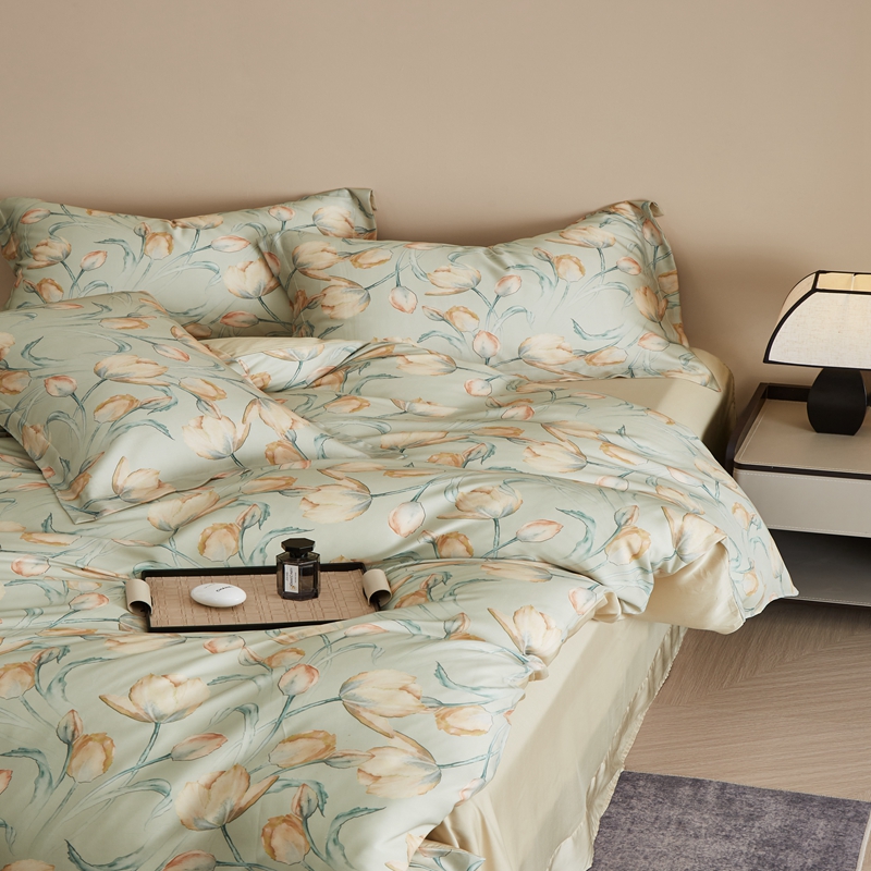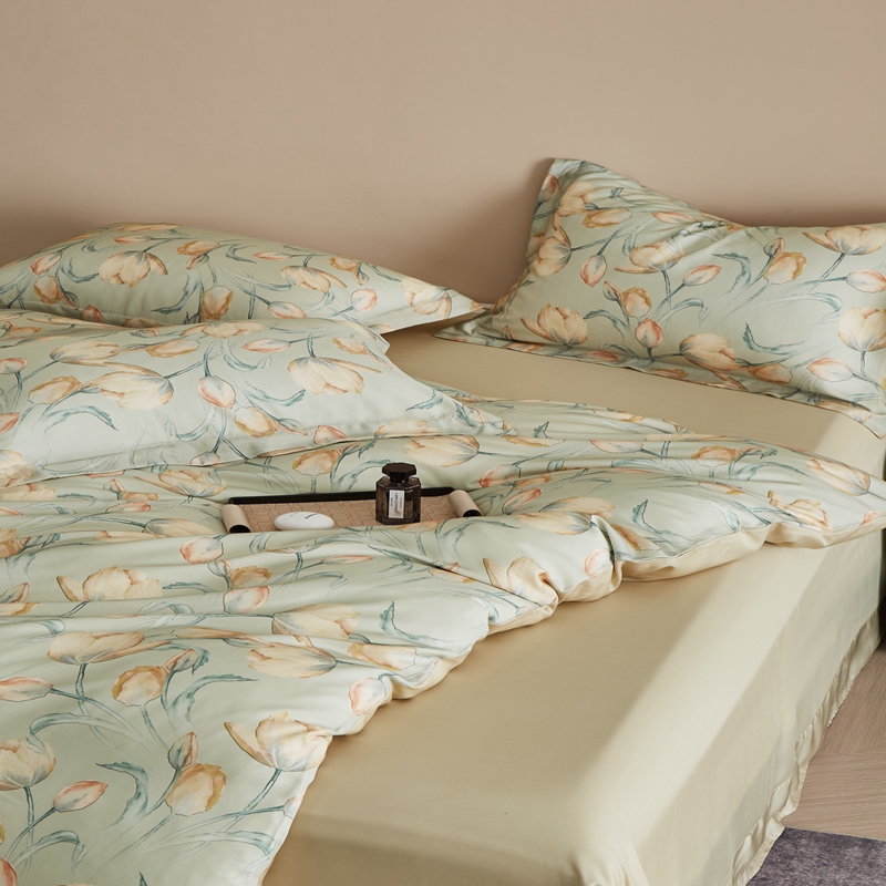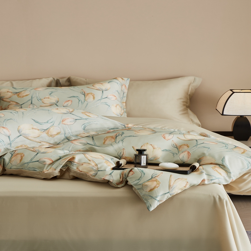 顾家家居 2025新款莱塞尔数码印花四件套 林间蜜杏