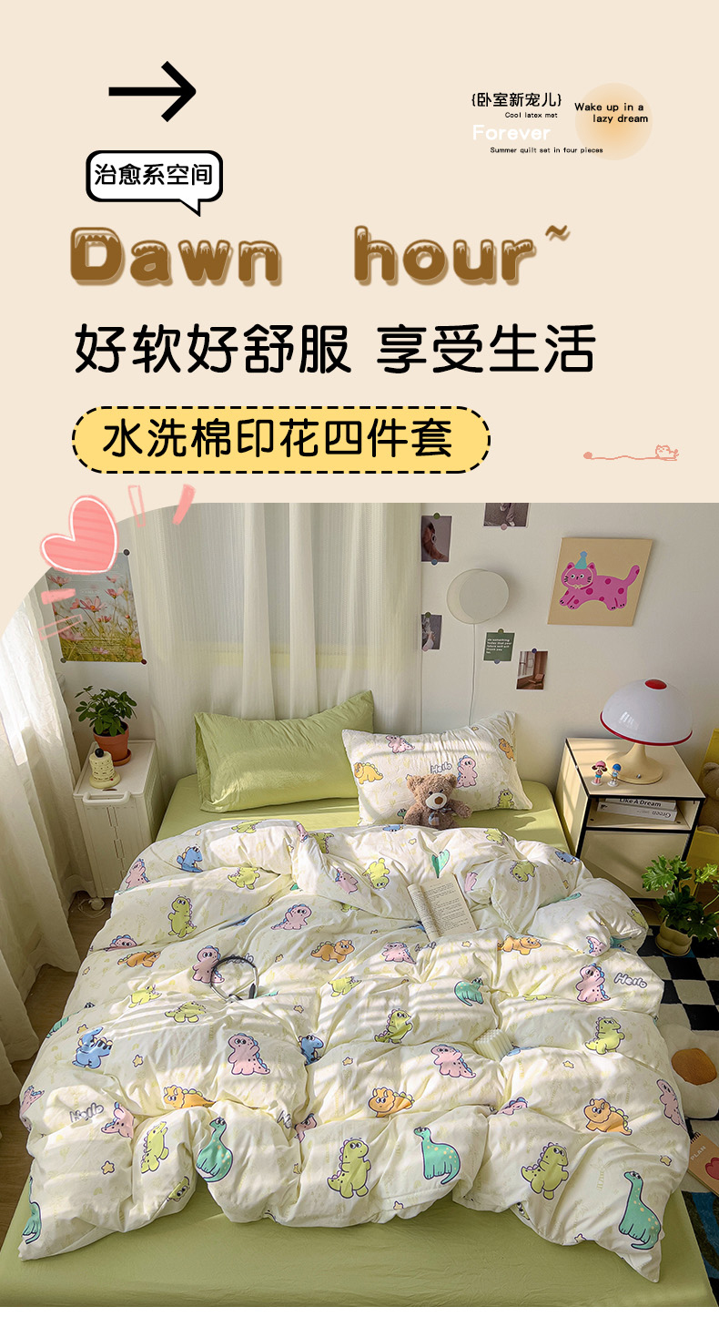 当前位置: 91家纺网 > 商品网购 > 床品套件 > 四件套 > 水洗棉四件套 > 仟人梦 2025新款水洗棉印花四件套 恐龙日记