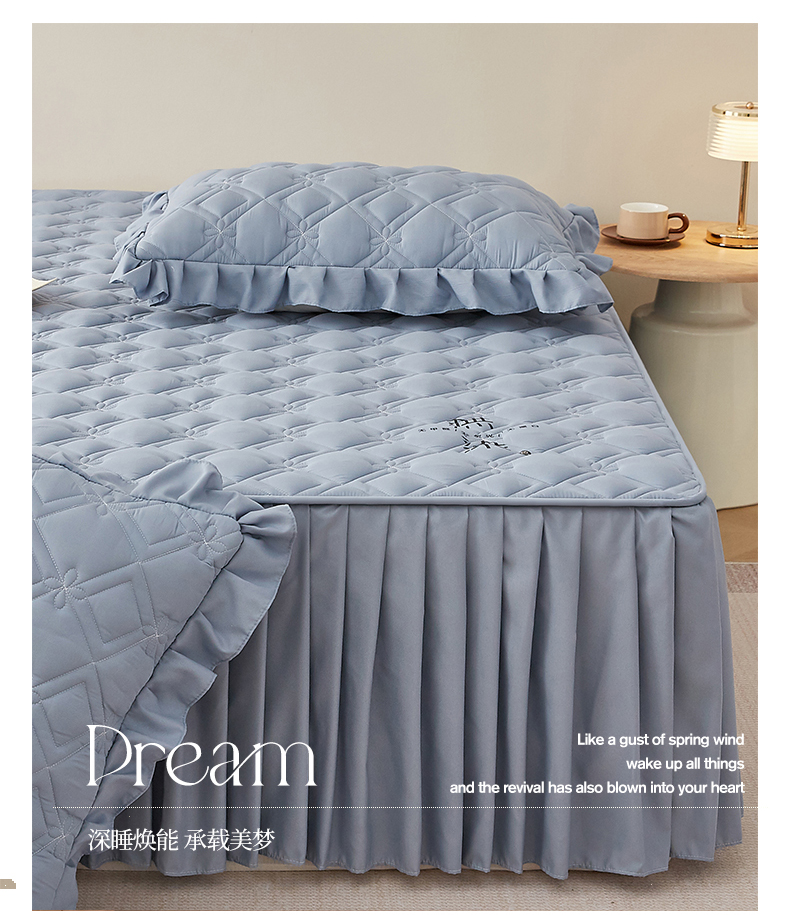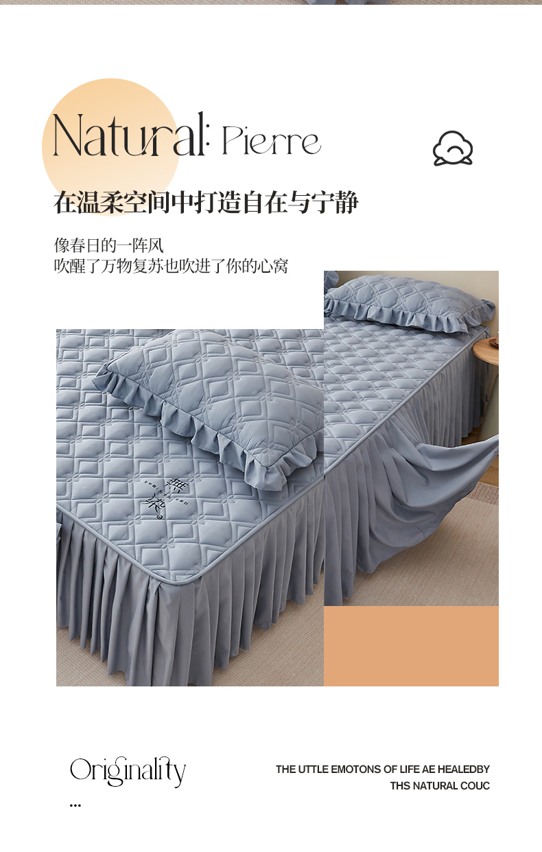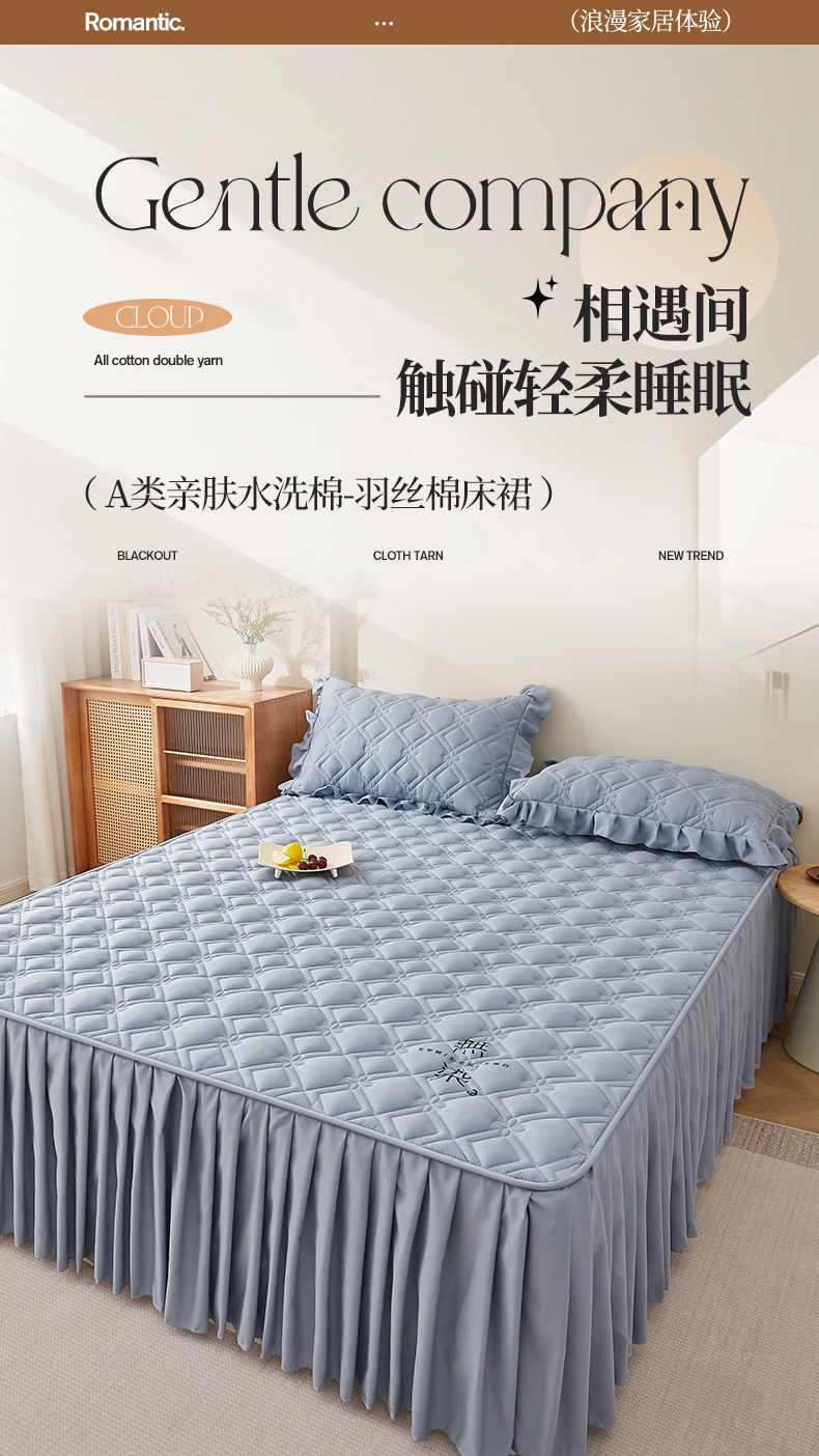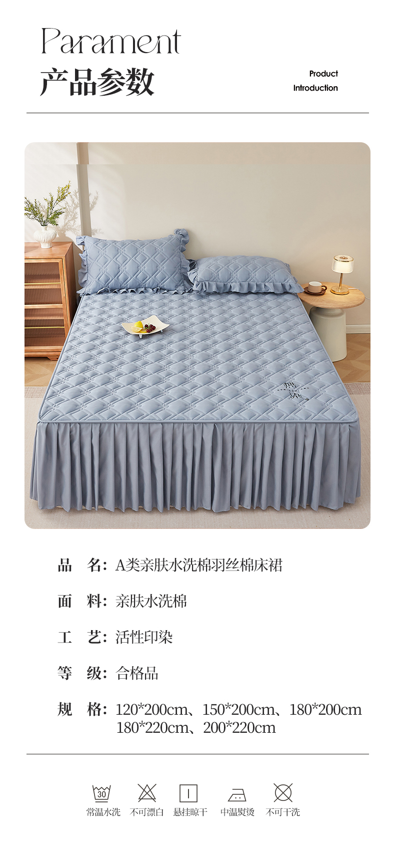 东宇 2025年新款A类亲肤水洗棉-羽丝棉床裙 无染床裙-蓝灰