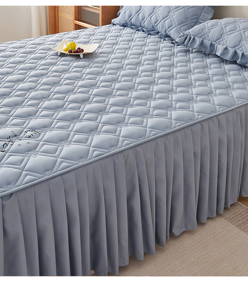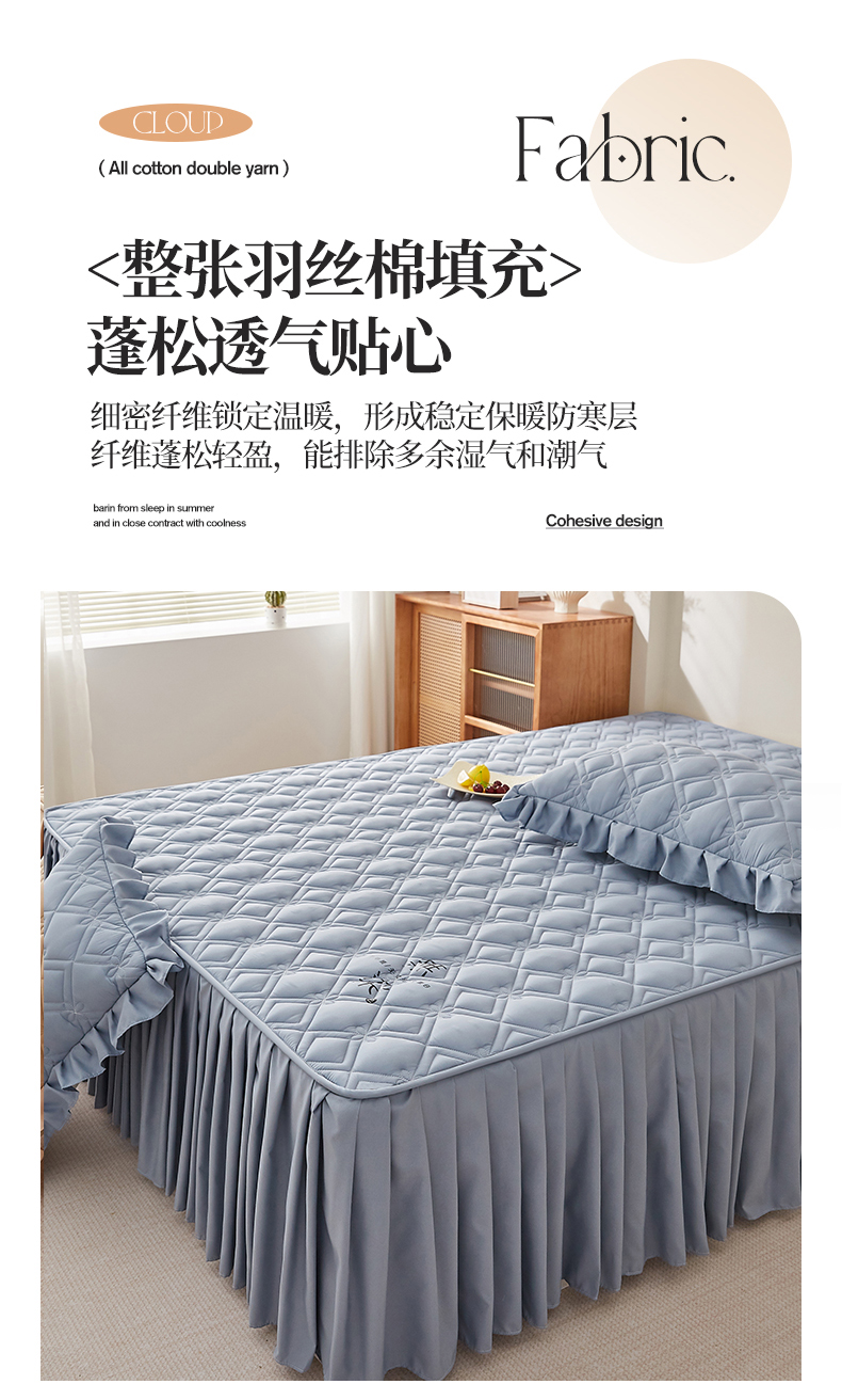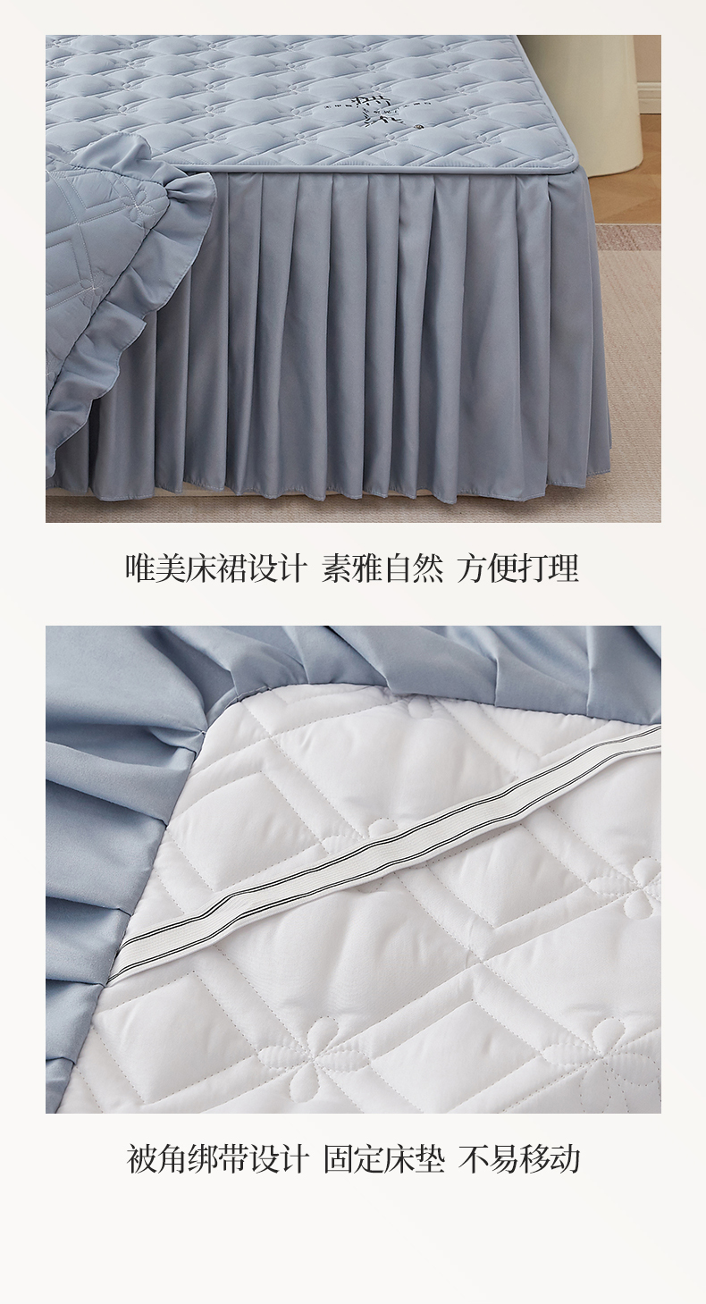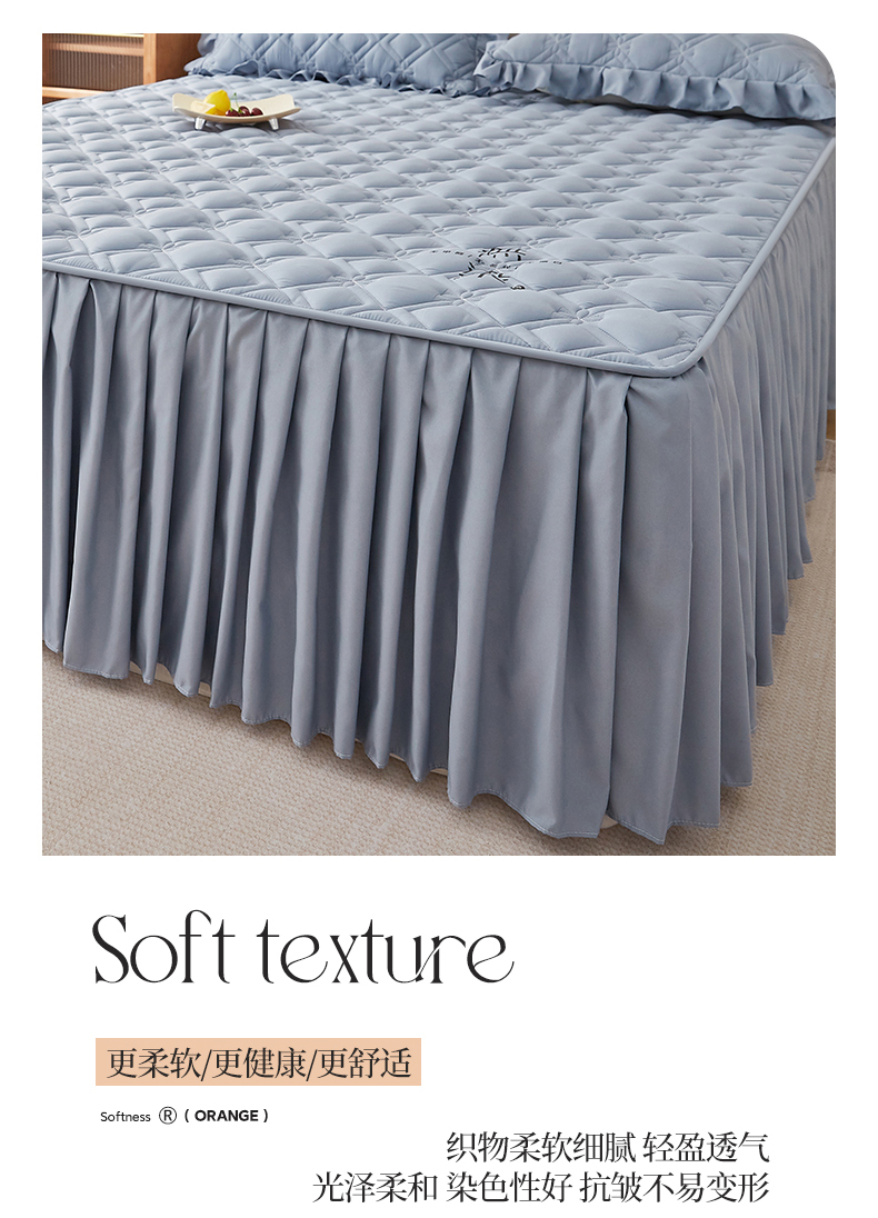 • 91家纺网 家纺一手货源 找家纺 东宇 2025年新款A类亲肤水洗棉-羽丝棉床裙 无染床裙-蓝灰