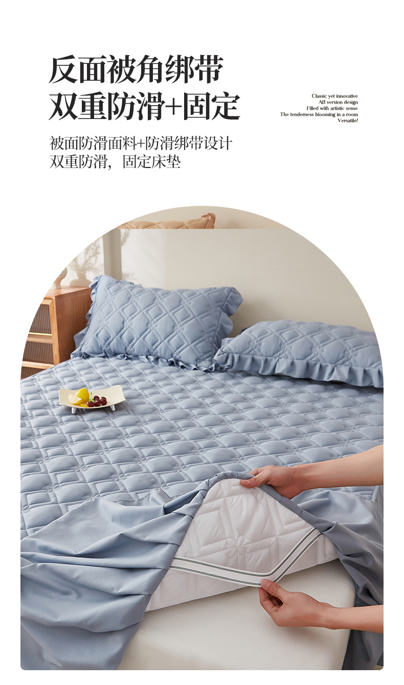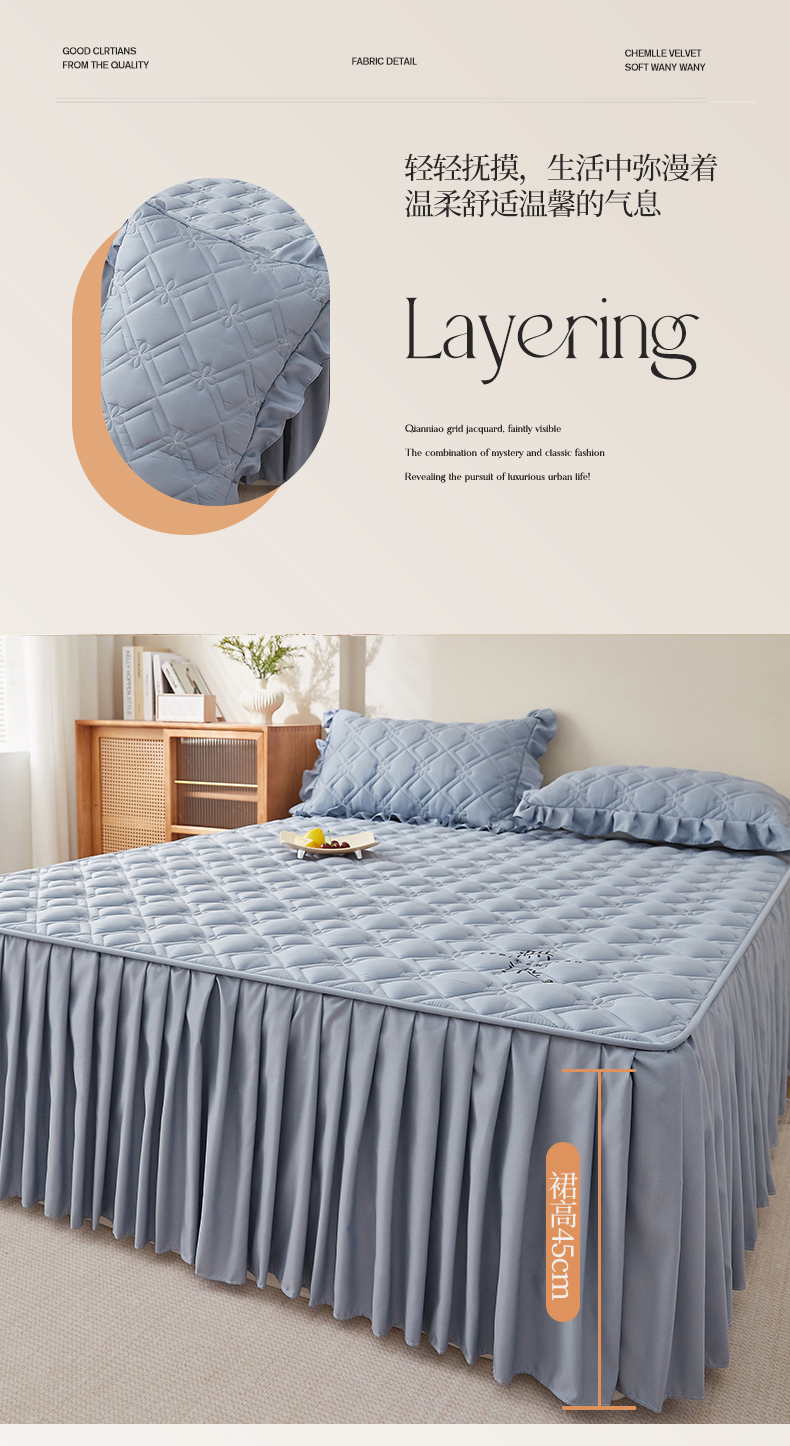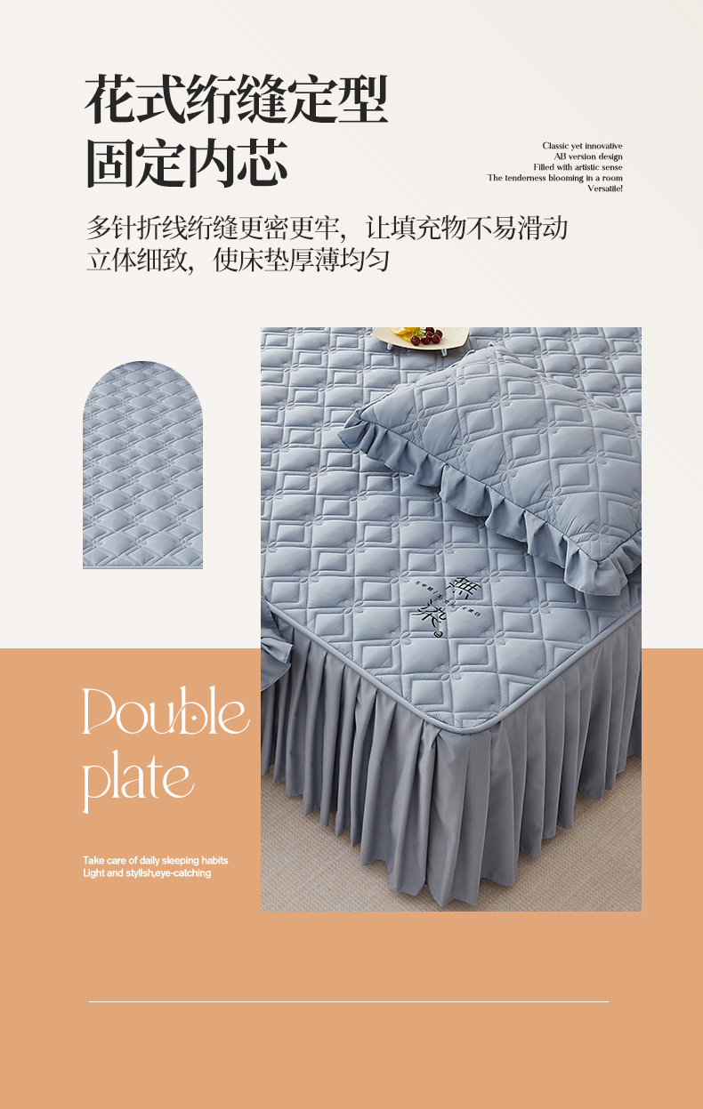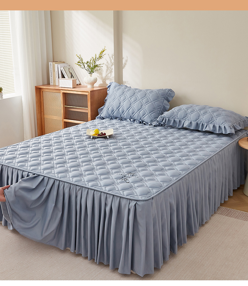 • 91家纺网 家纺一手货源 找家纺 东宇 2025年新款A类亲肤水洗棉-羽丝棉床裙 无染床裙-蓝灰