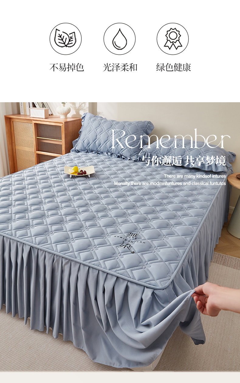 当前位置: 91家纺网 > 商品网购 > 床上用品 > 床裙 > 东宇 2025年新款A类亲肤水洗棉-羽丝棉床裙 无染床裙-蓝灰