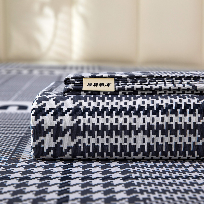 • 91家纺网 家纺一手货源 找家纺 帛洵2025新款原棉老粗布床单 迷你千鸟格