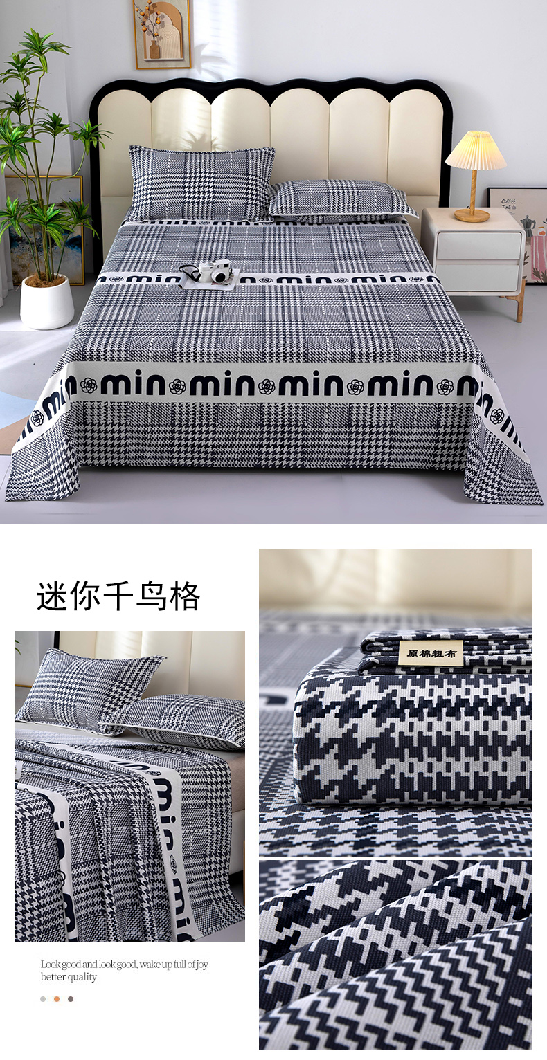 帛洵2025新款原棉老粗布床单 迷你千鸟格