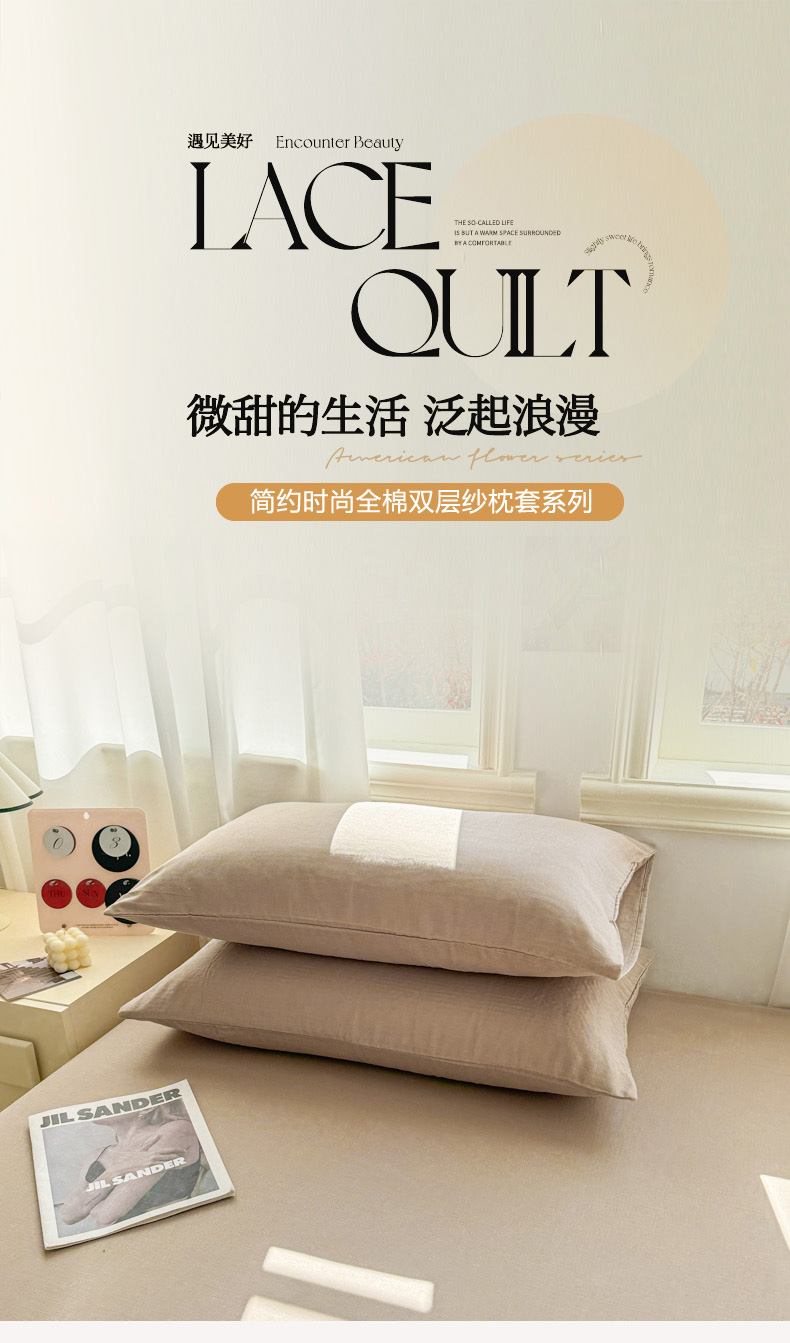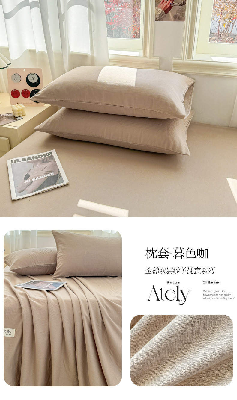 商品名称:眠博士2025新款全棉双层纱单枕套 双层纱枕套-暮色咖