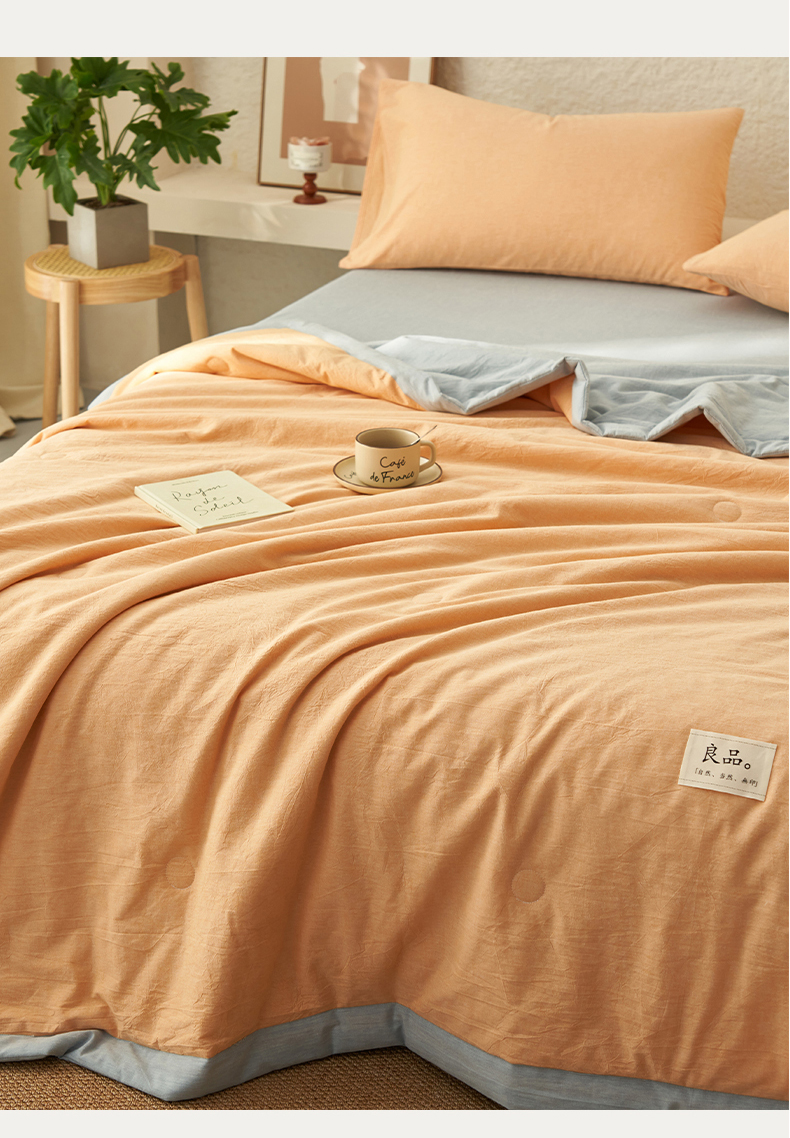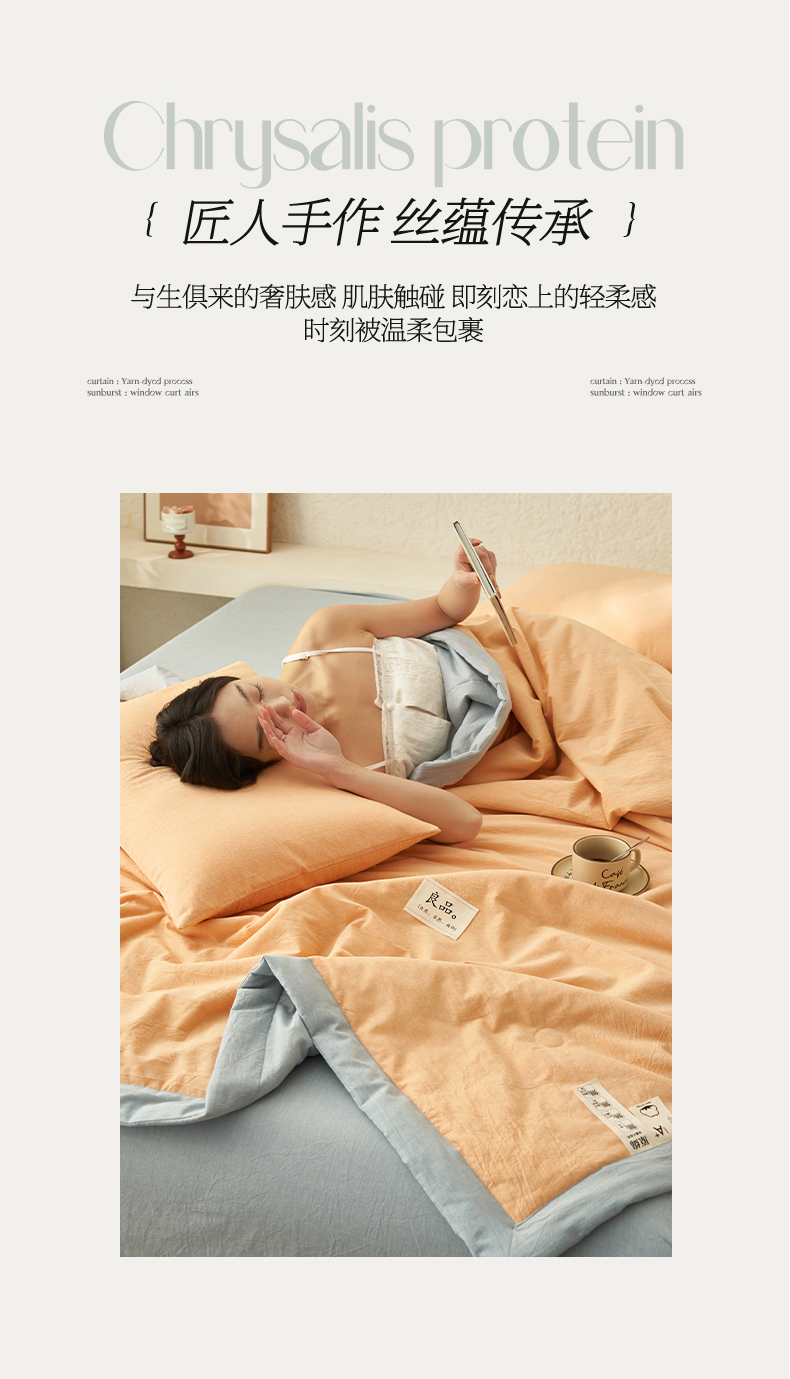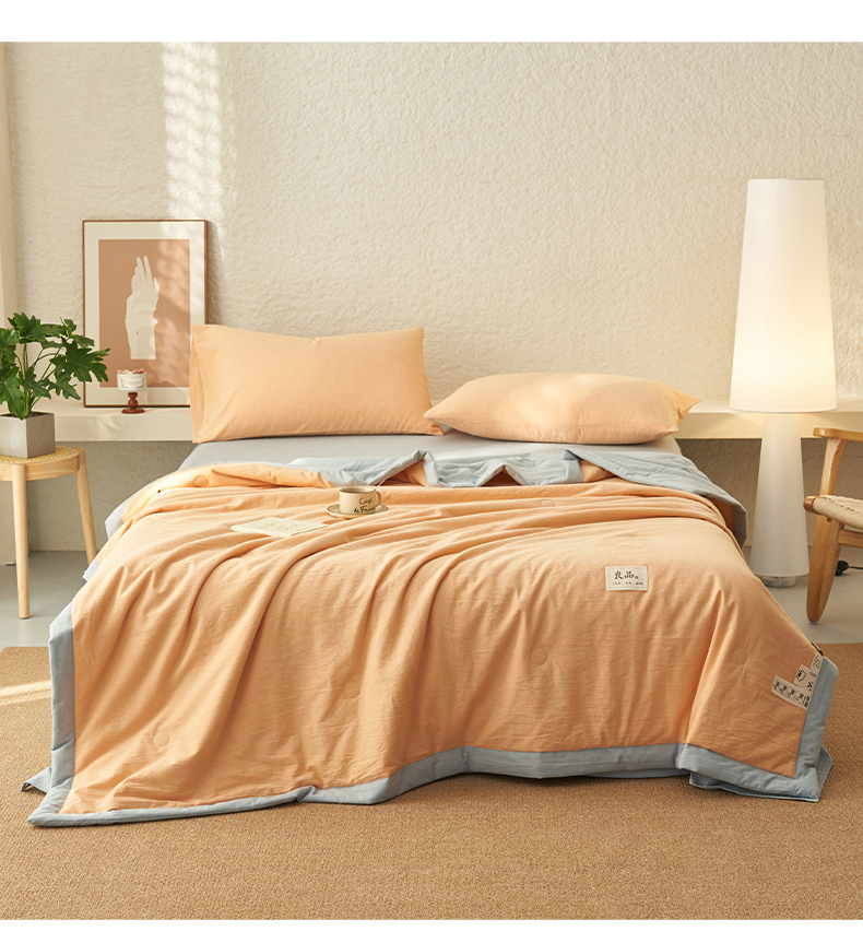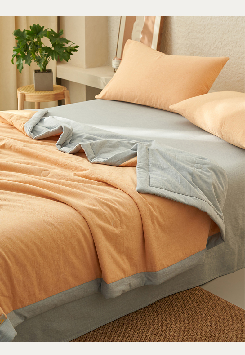 • 91家纺网 家纺一手货源 找家纺 一加一家纺2025新款A类全棉色织水洗棉双拼蚕蛹蛋白夏被四件套 橘灰色