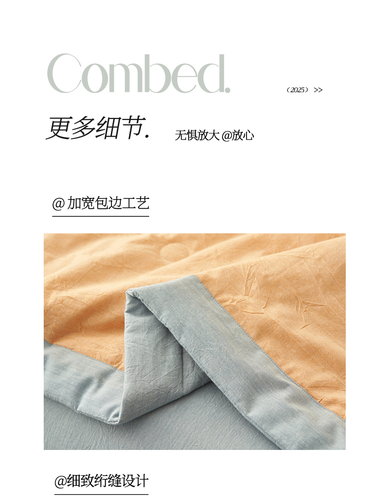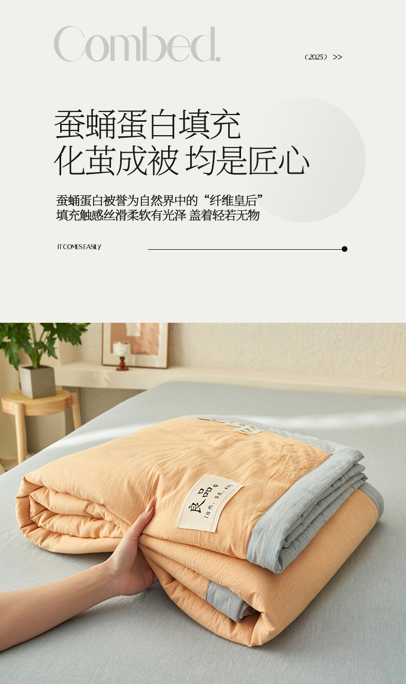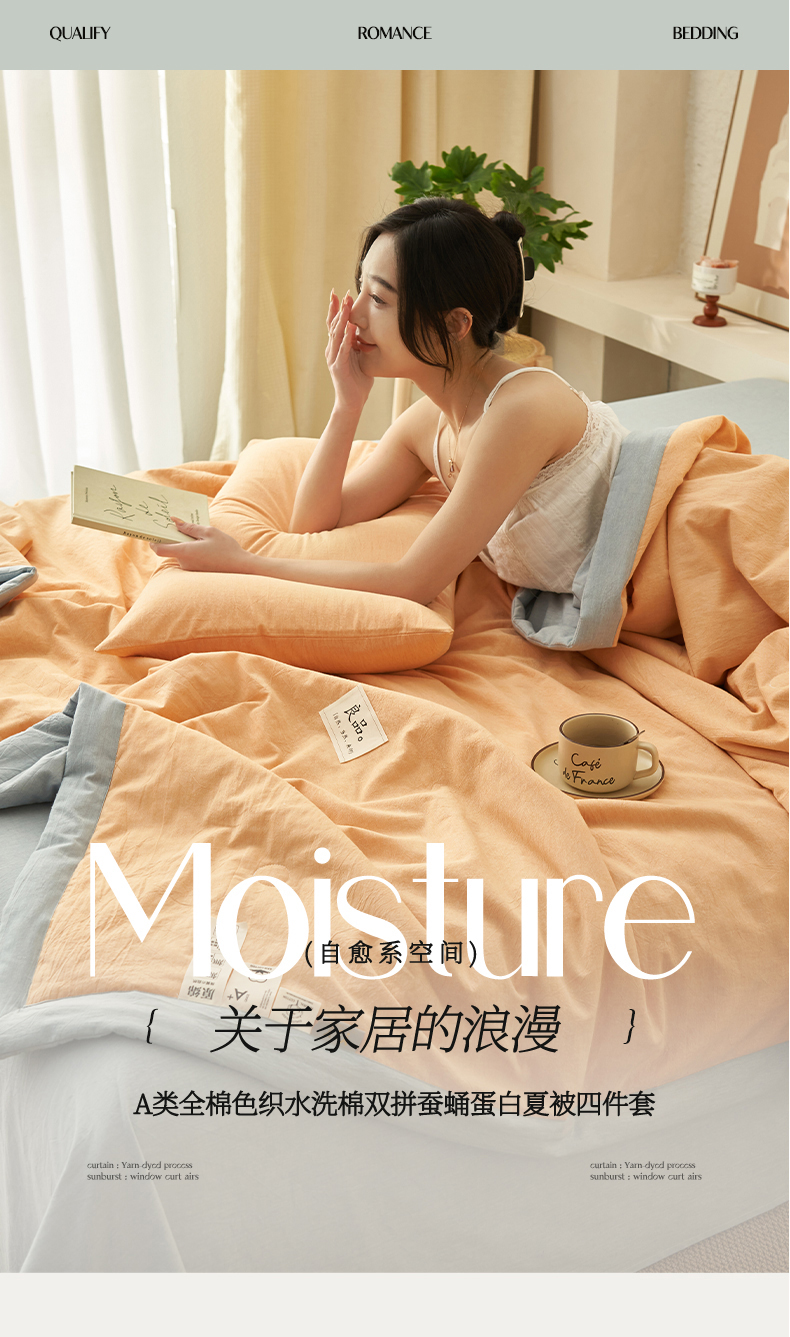 • 91家纺网 家纺一手货源 找家纺 一加一家纺2025新款A类全棉色织水洗棉双拼蚕蛹蛋白夏被四件套 橘灰色