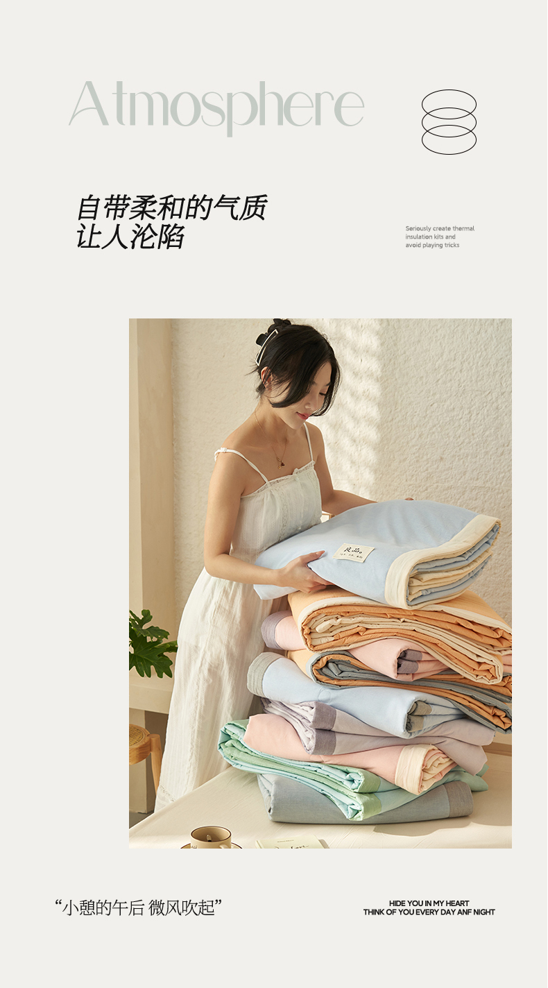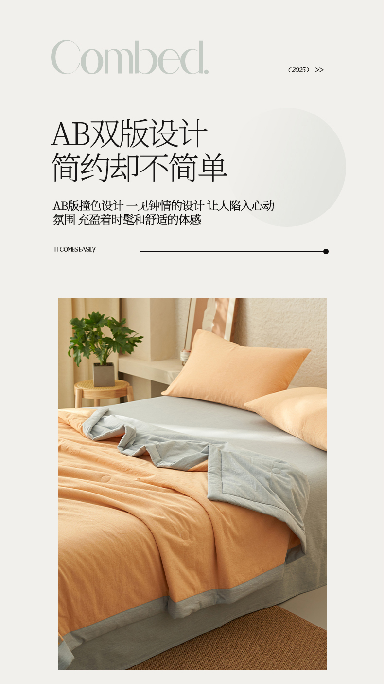 当前位置: 91家纺网 > 商品网购 > 被子 > 夏被 > 一加一家纺2025新款A类全棉色织水洗棉双拼蚕蛹蛋白夏被四件套 橘灰色