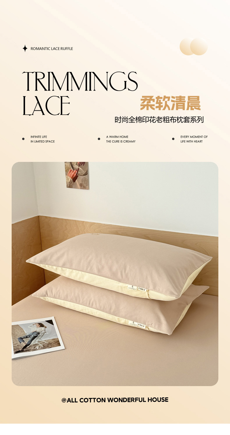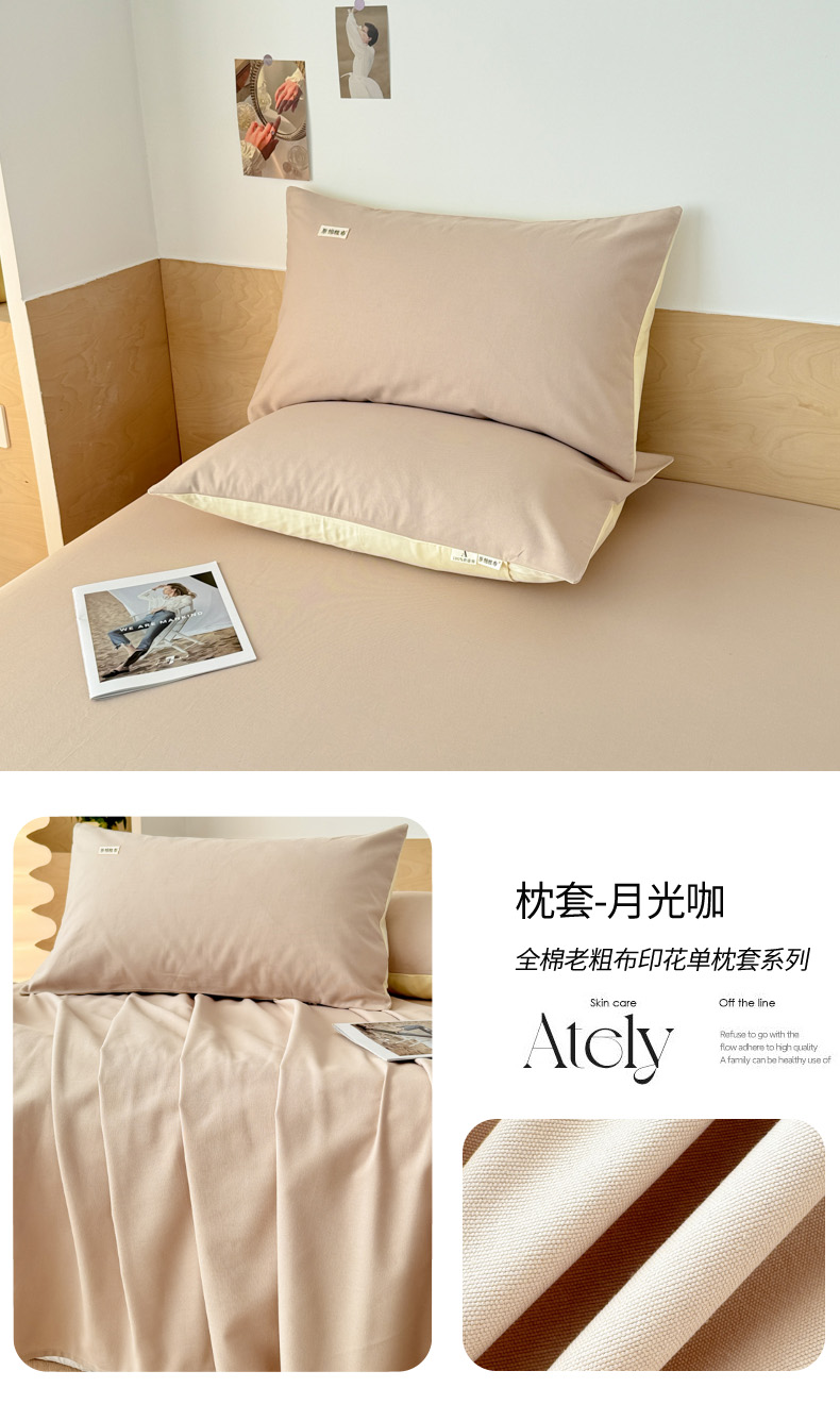 商品名称:眠博士2025新款全棉老粗布枕套 老粗布枕套-月光咖