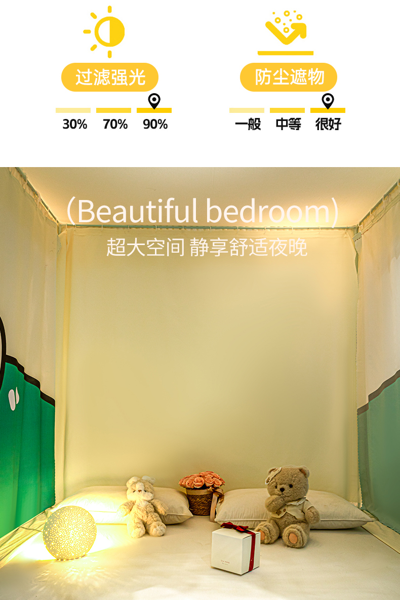(总)飞轮海 2025新款全包遮光防蚊蚊帐Z31,黛蓝,奶油黄,香槟