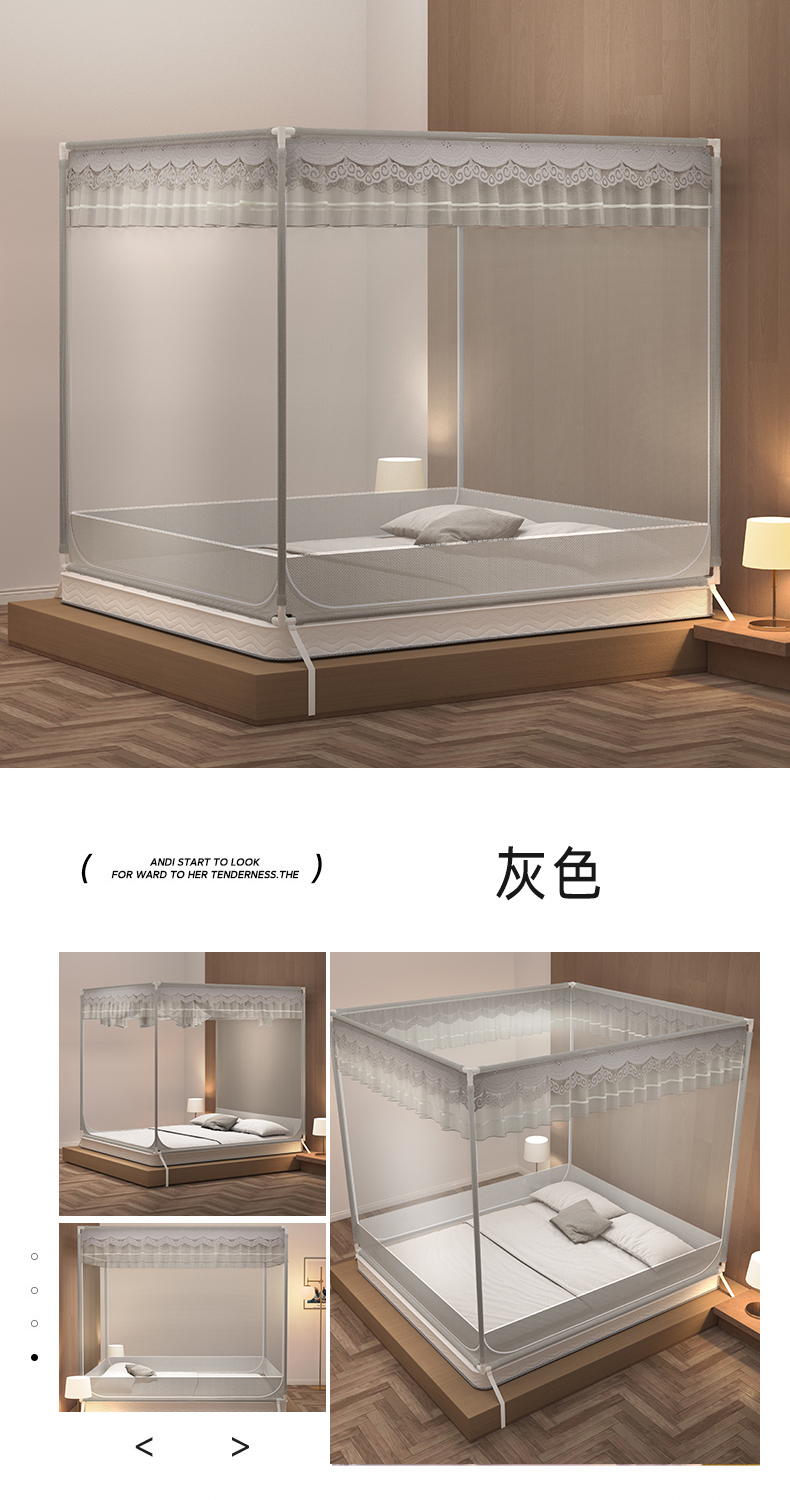 (总)飞轮海蚊帐 2023新款三开门落地遮光蚊帐-L-93,高级灰,芥末绿,奶油黄,香槟