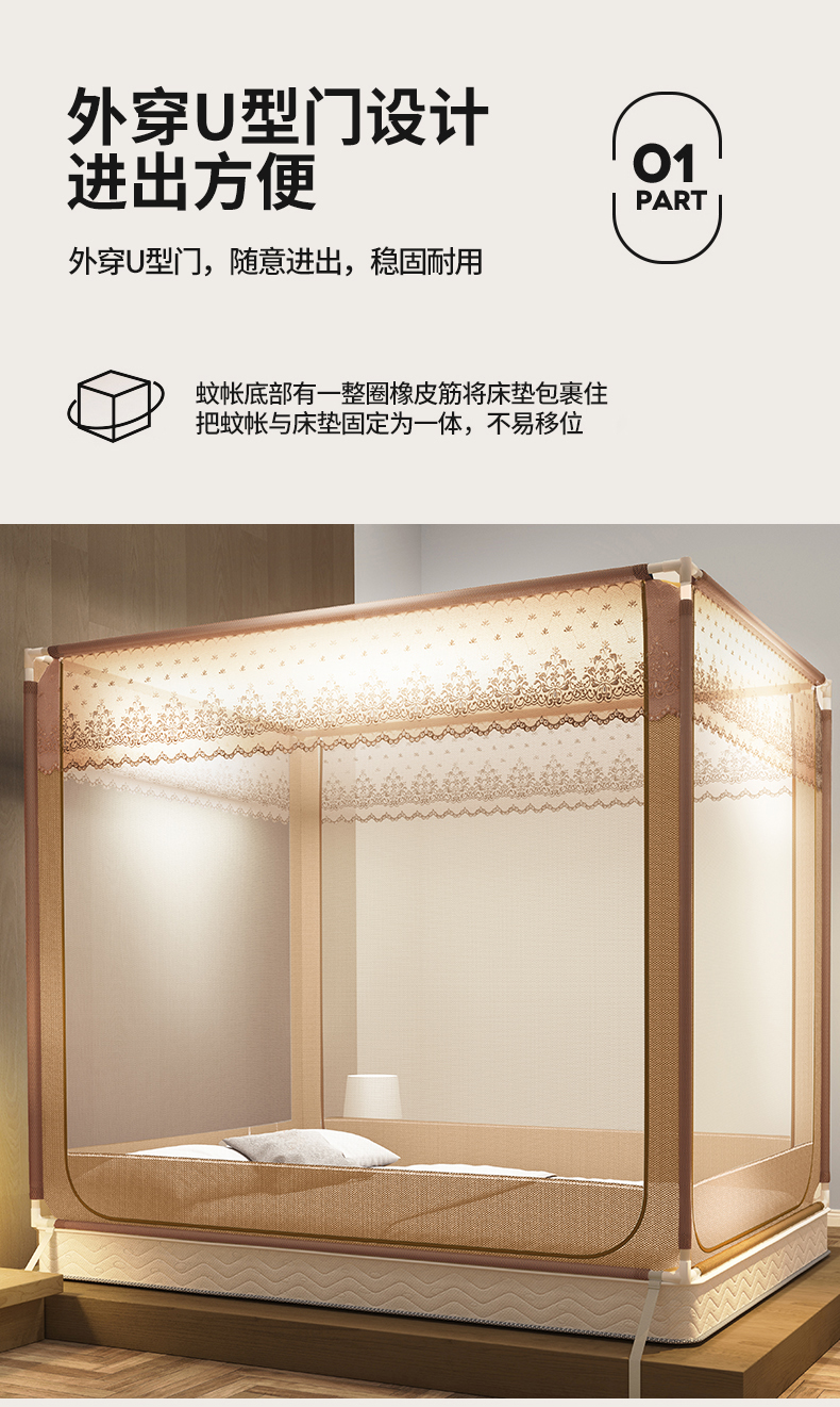 商品名称:飞轮海蚊帐 2025防蚊全底回底外穿坐床蚊帐-Z55 T55 Z52 Z55香槟 全底