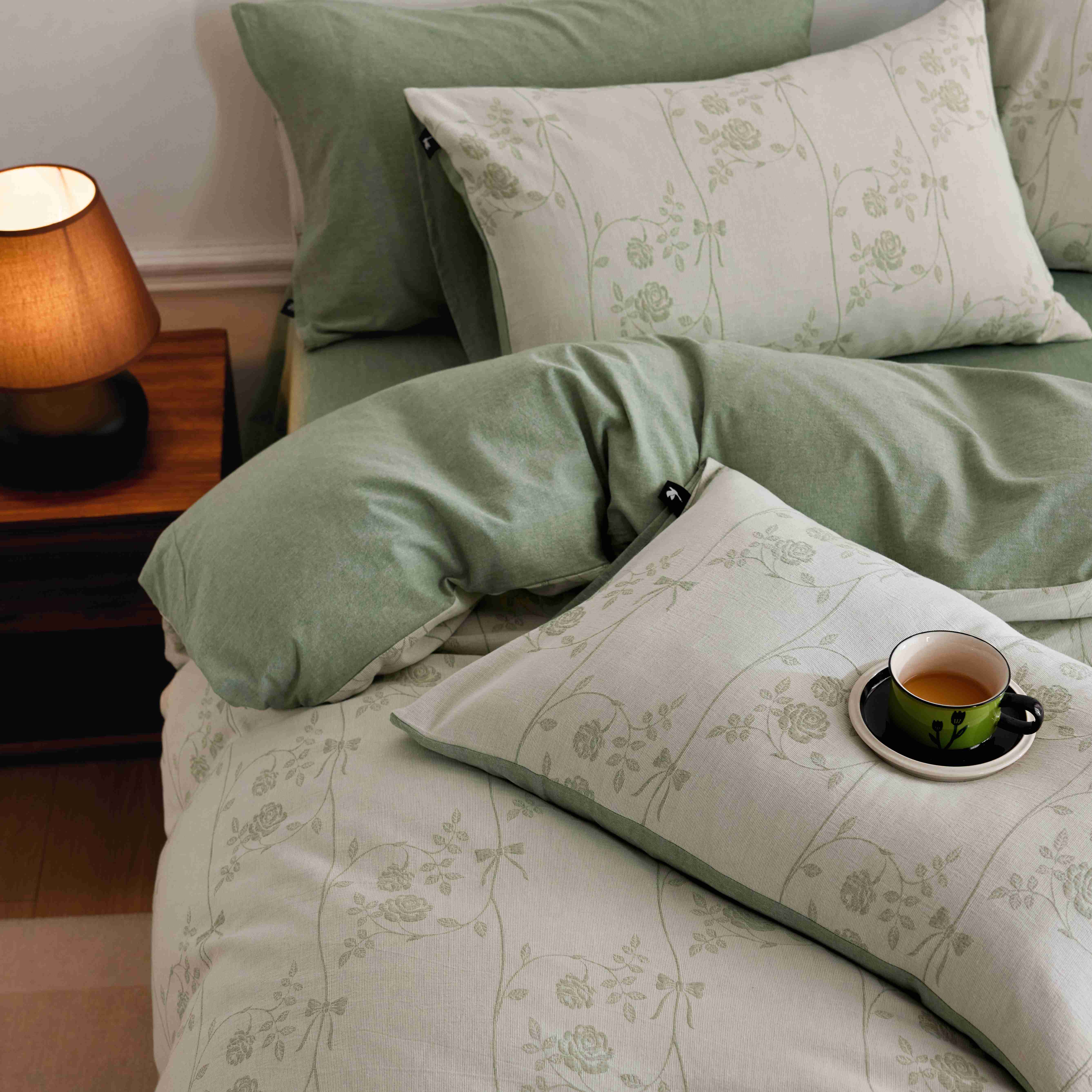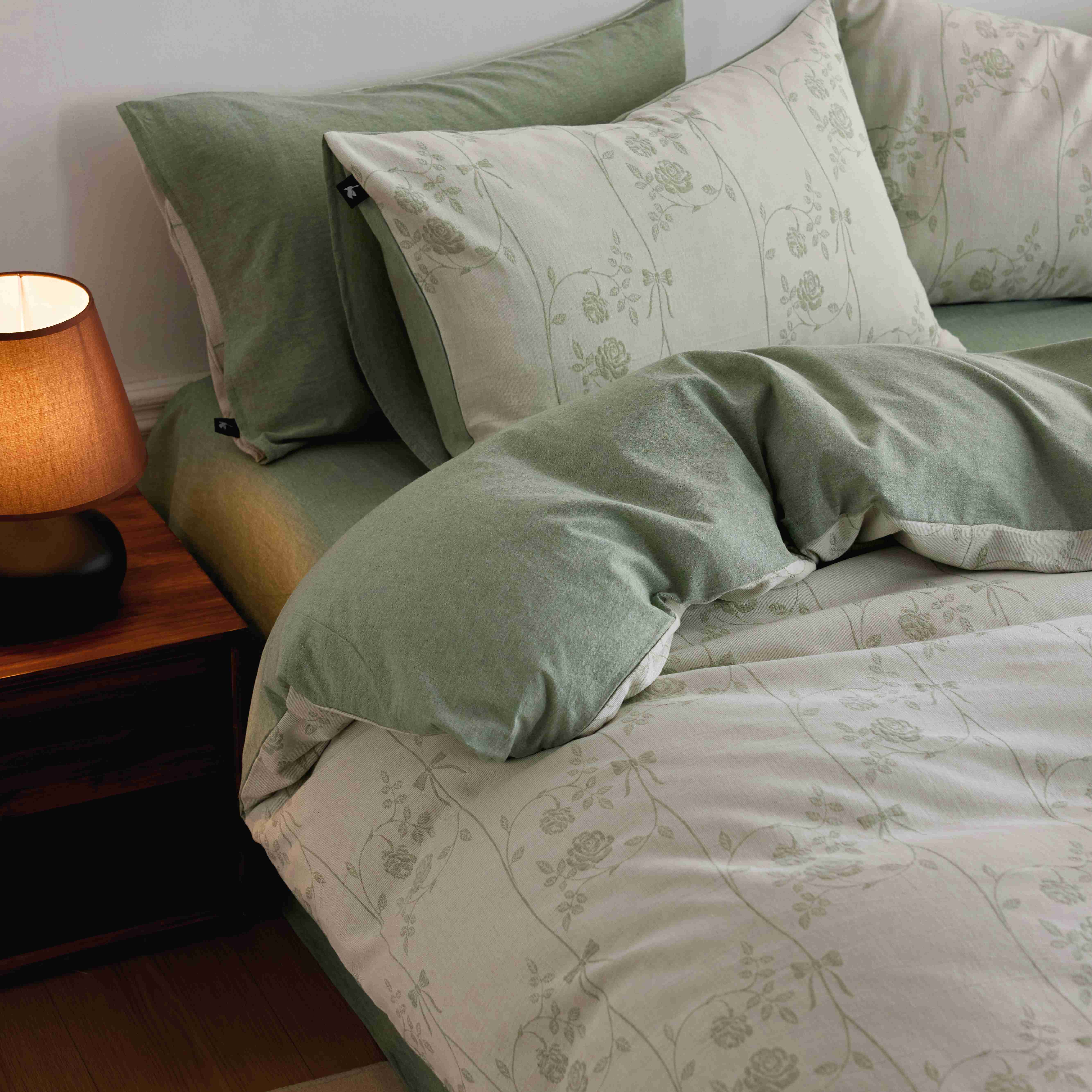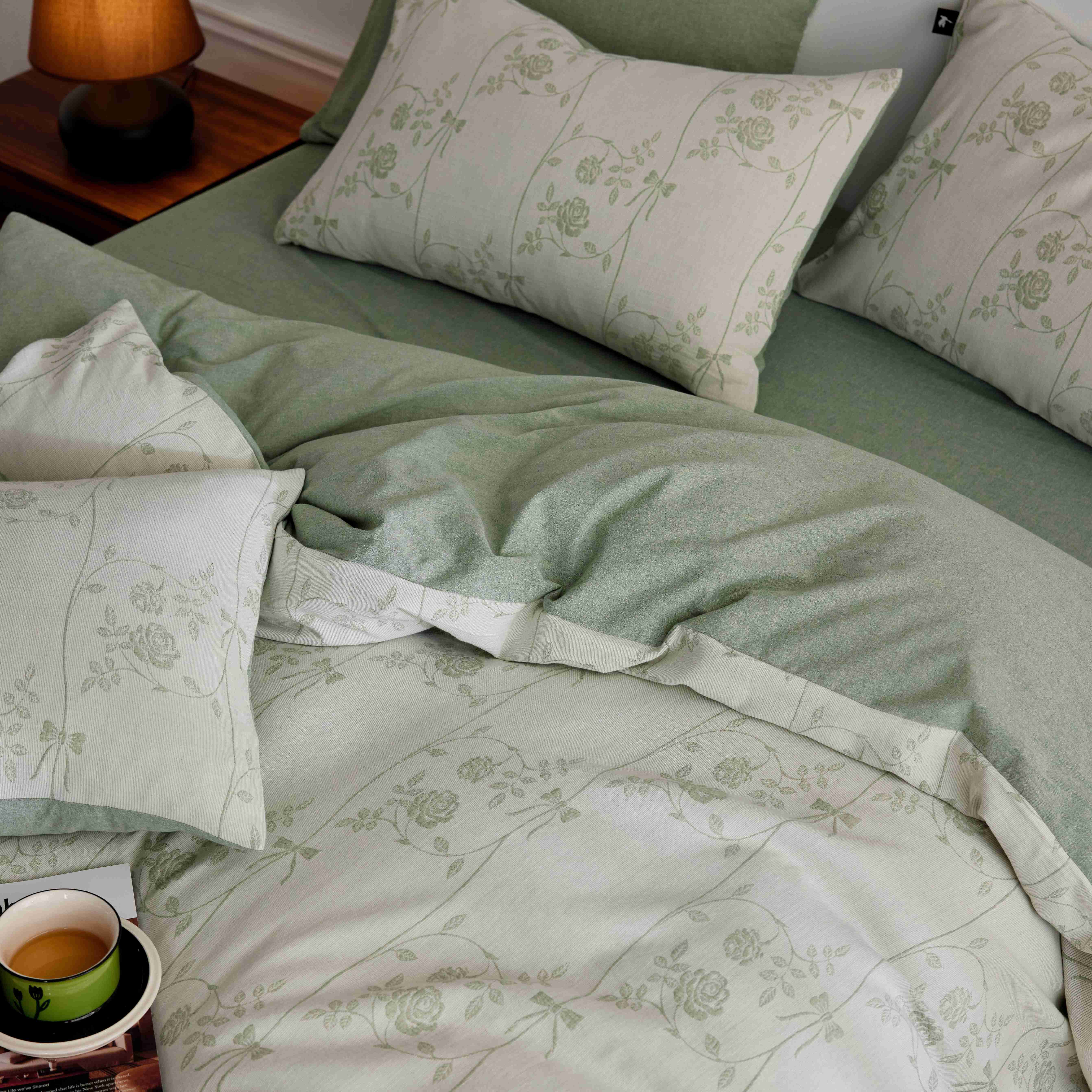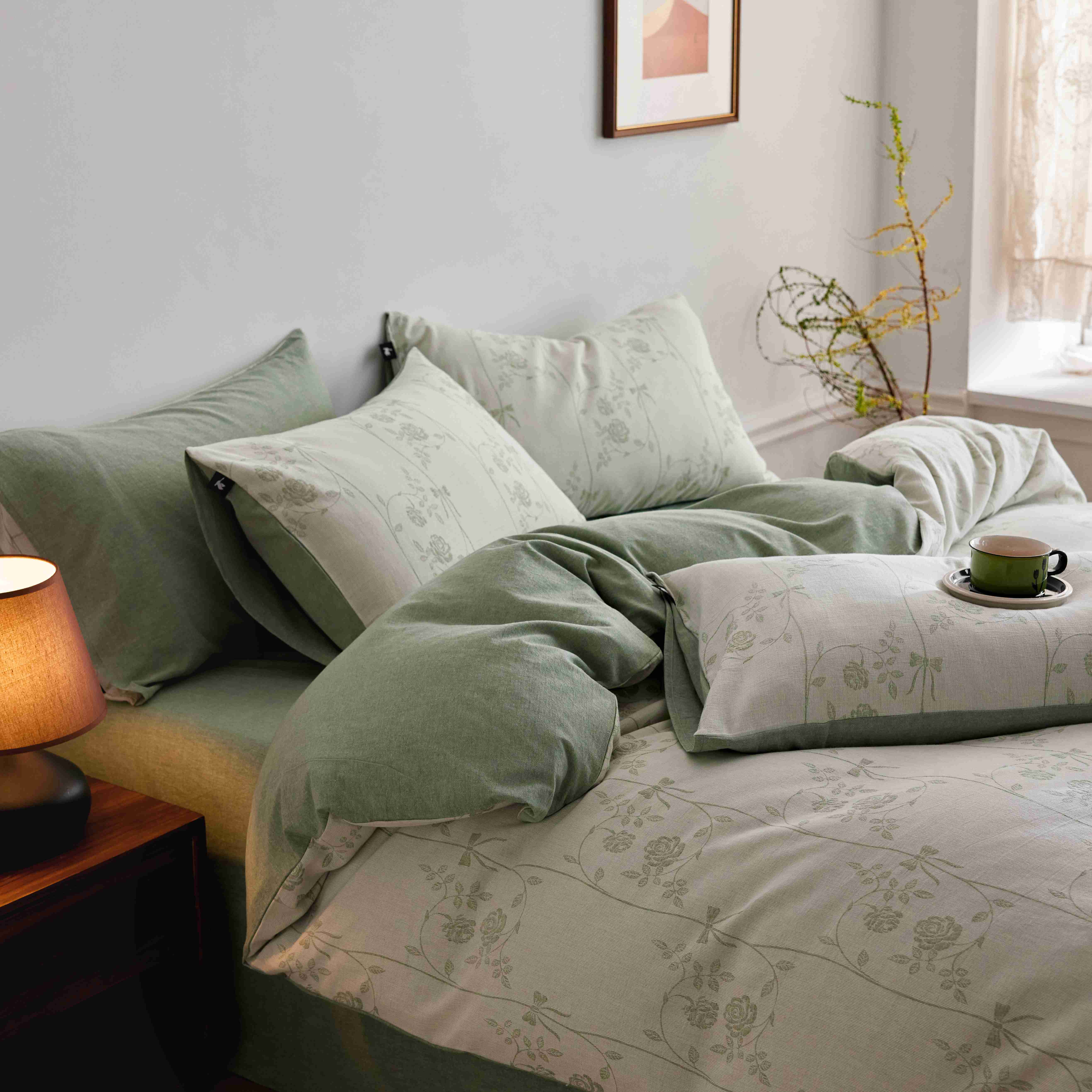 安莱生活 2025新款60s双层纱色织大提花枝上玫瑰四件套系列 枝上玫瑰-草绿