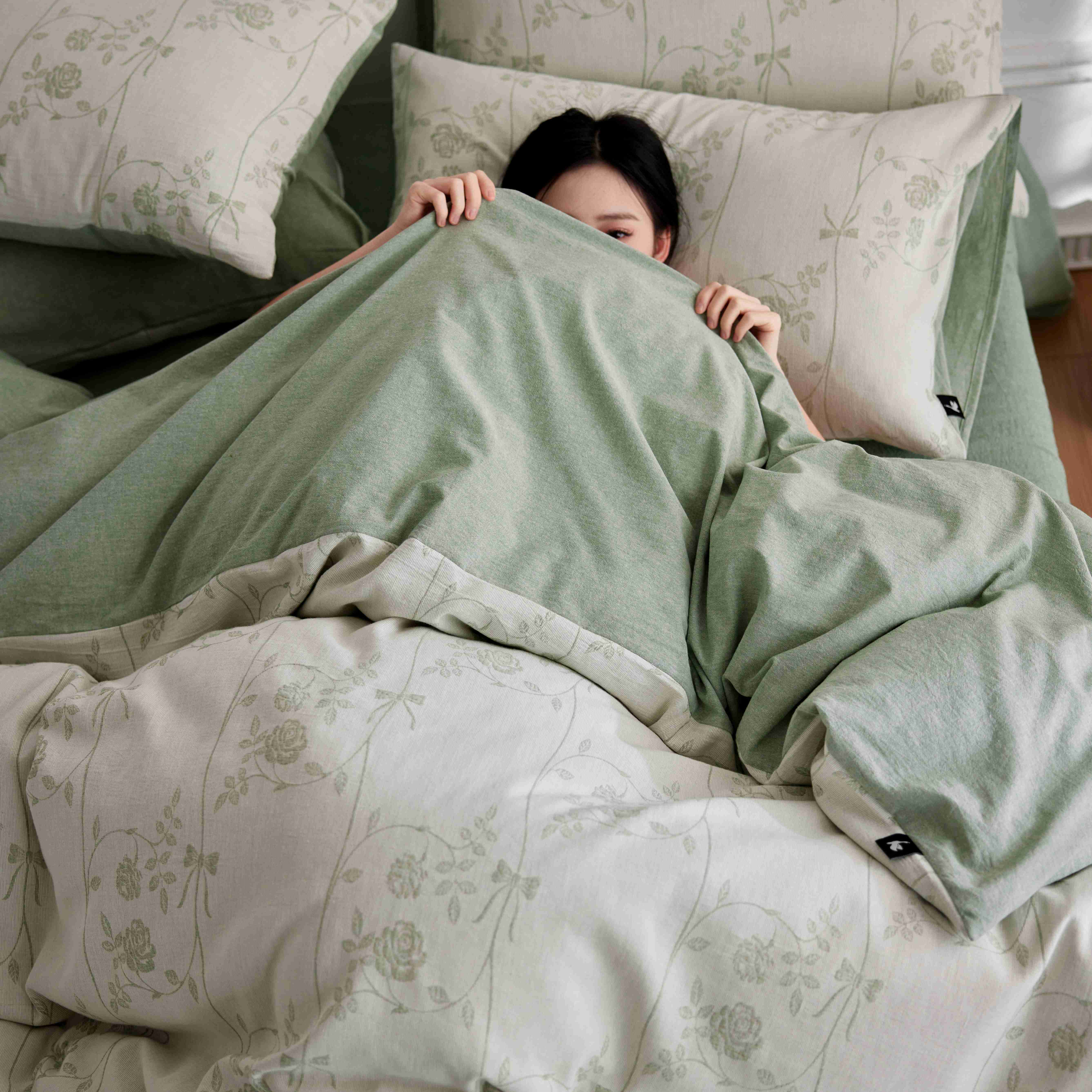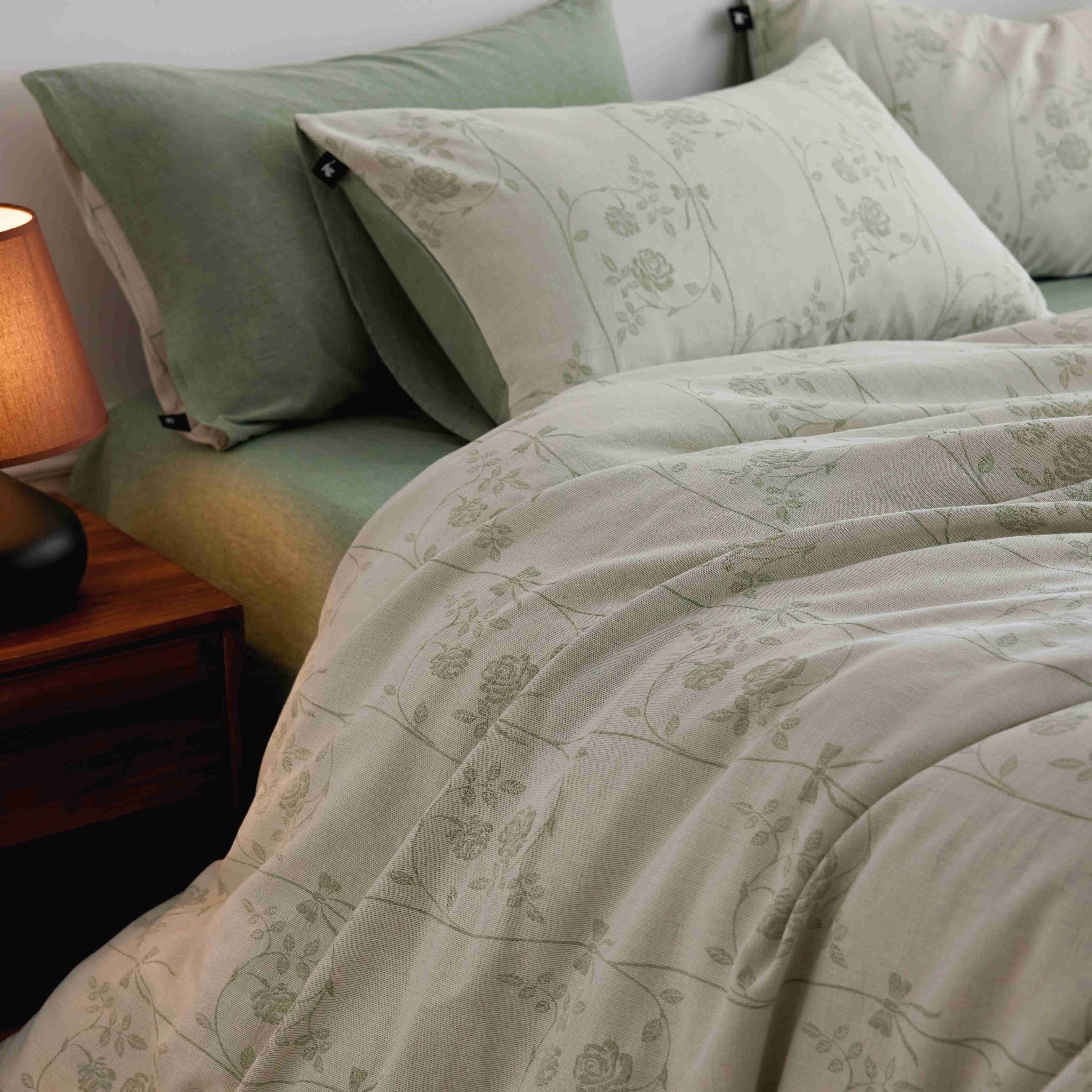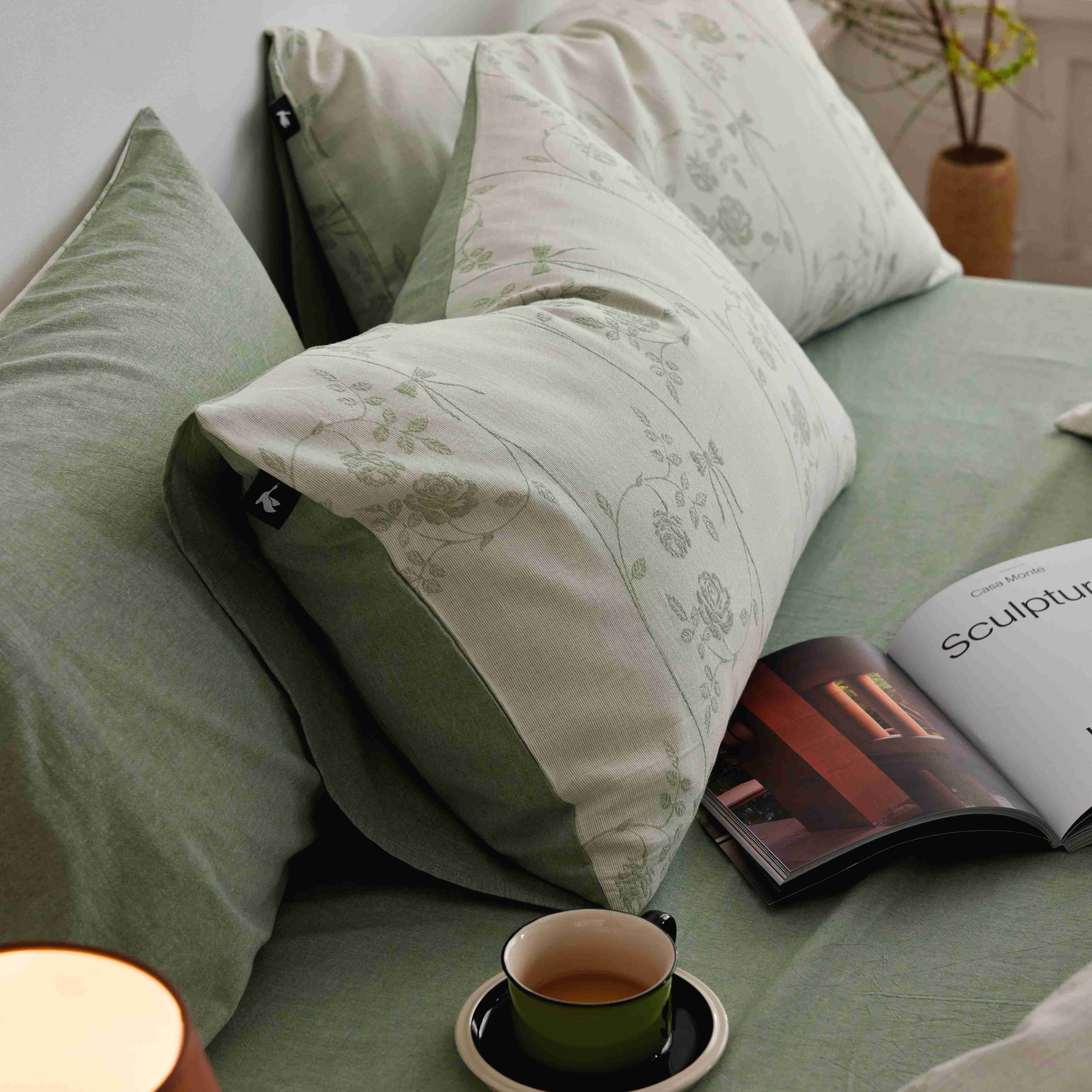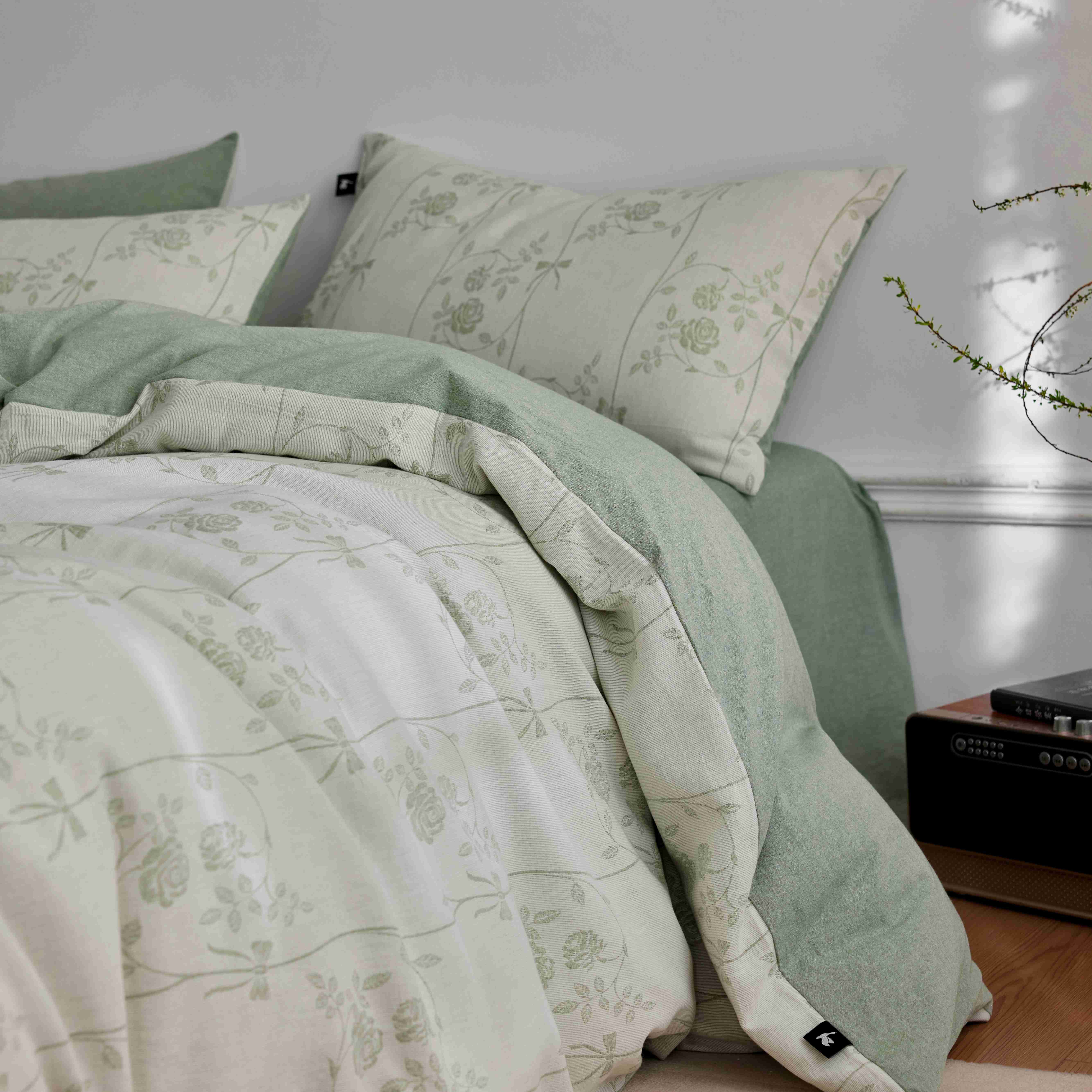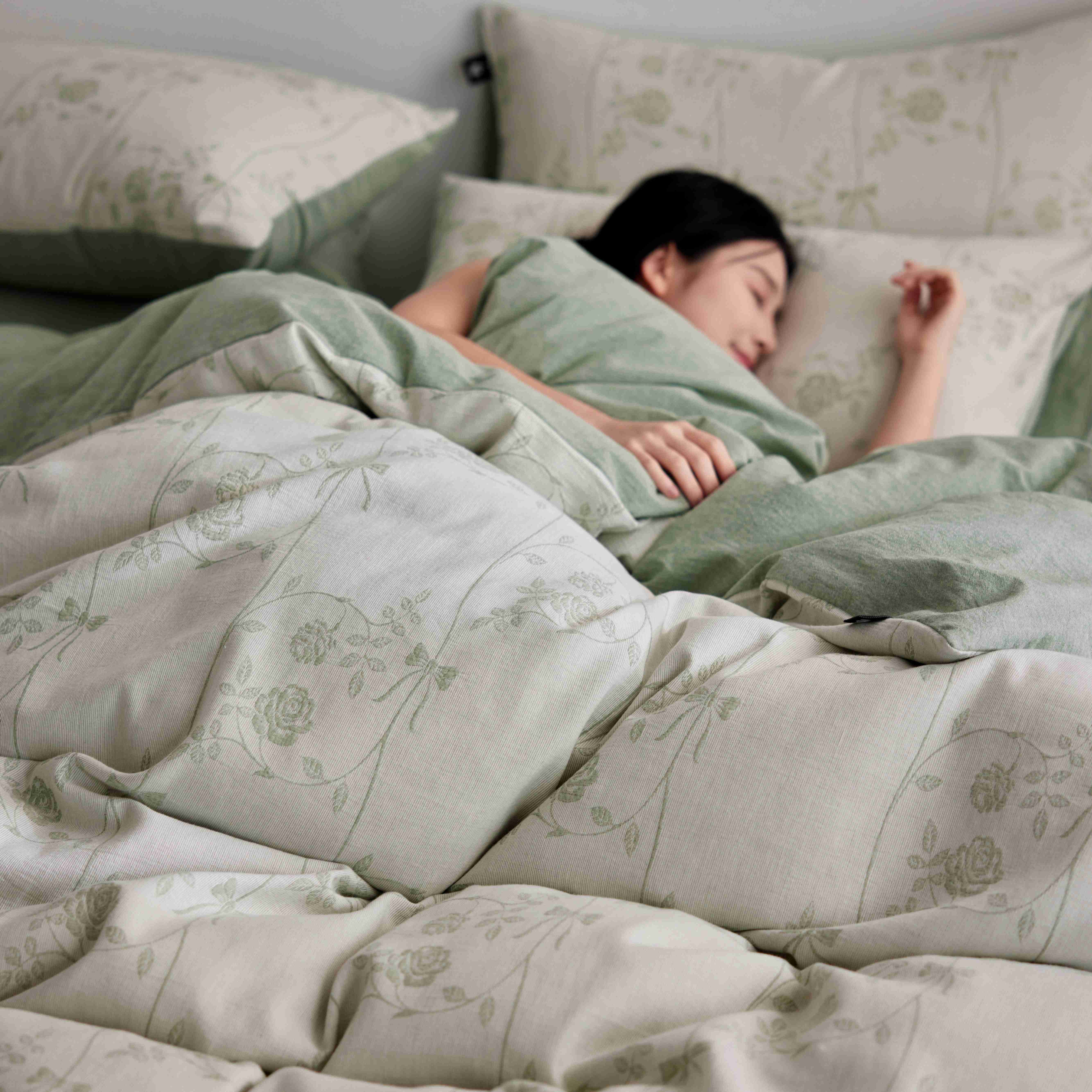 安莱生活 2025新款60s双层纱色织大提花枝上玫瑰四件套系列 枝上玫瑰-草绿