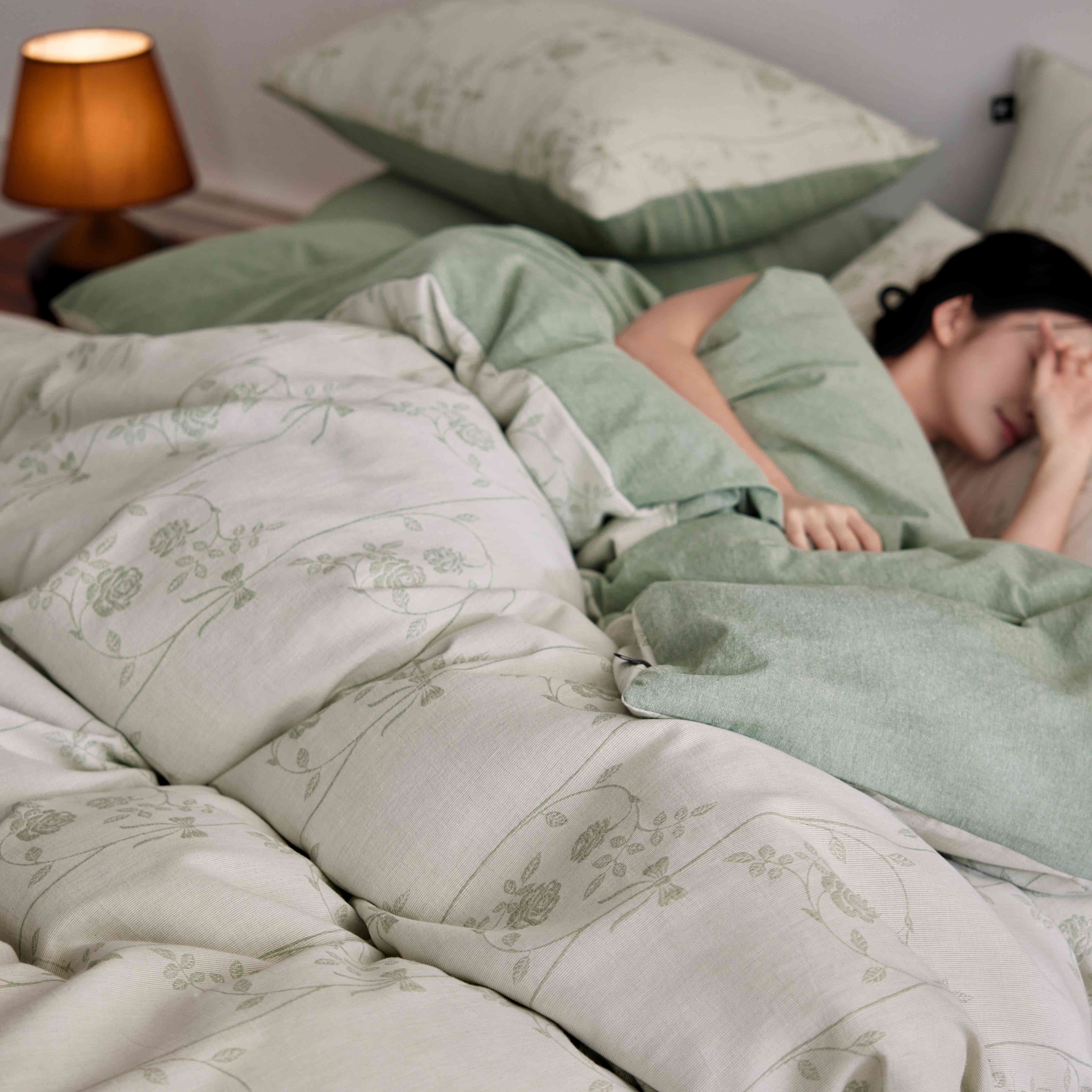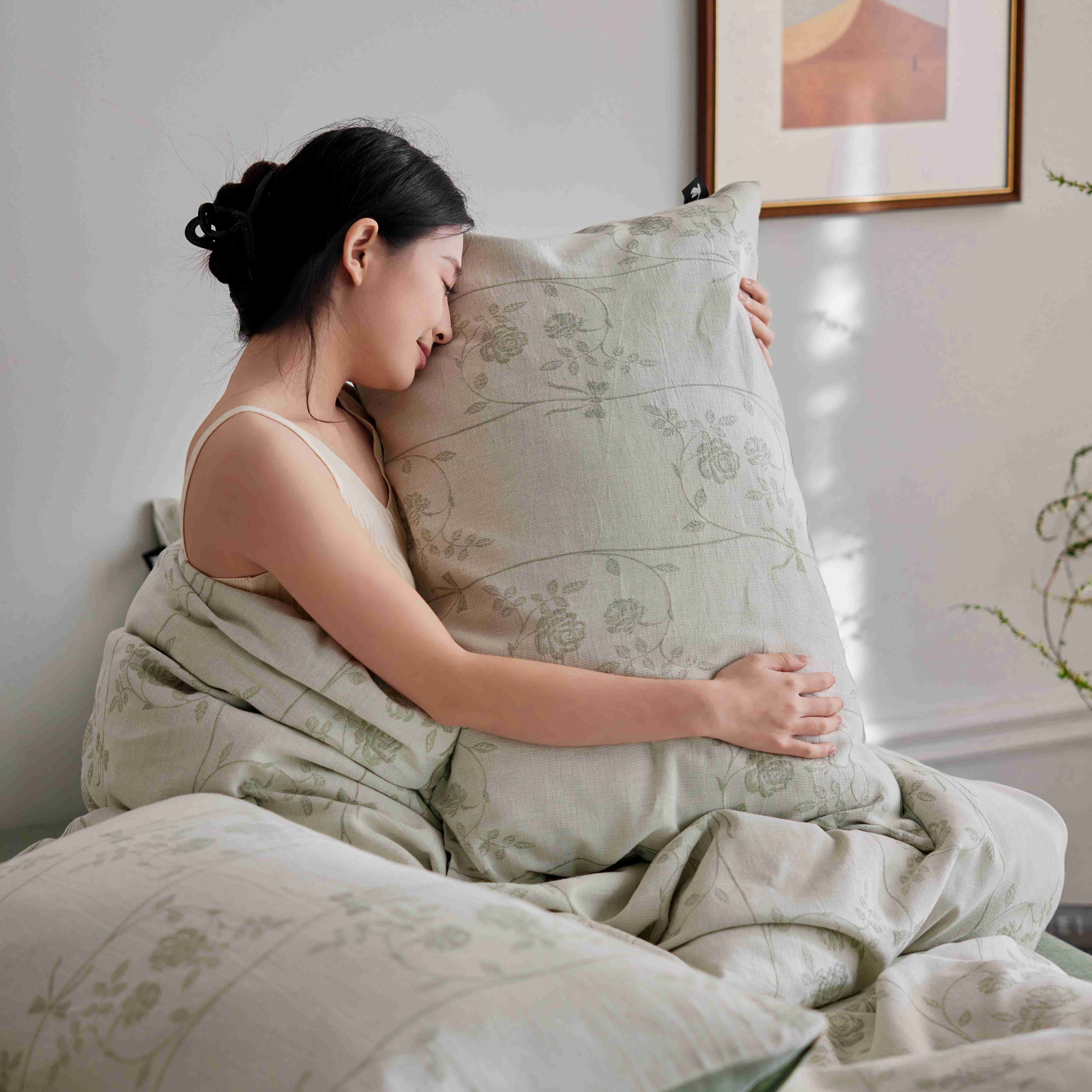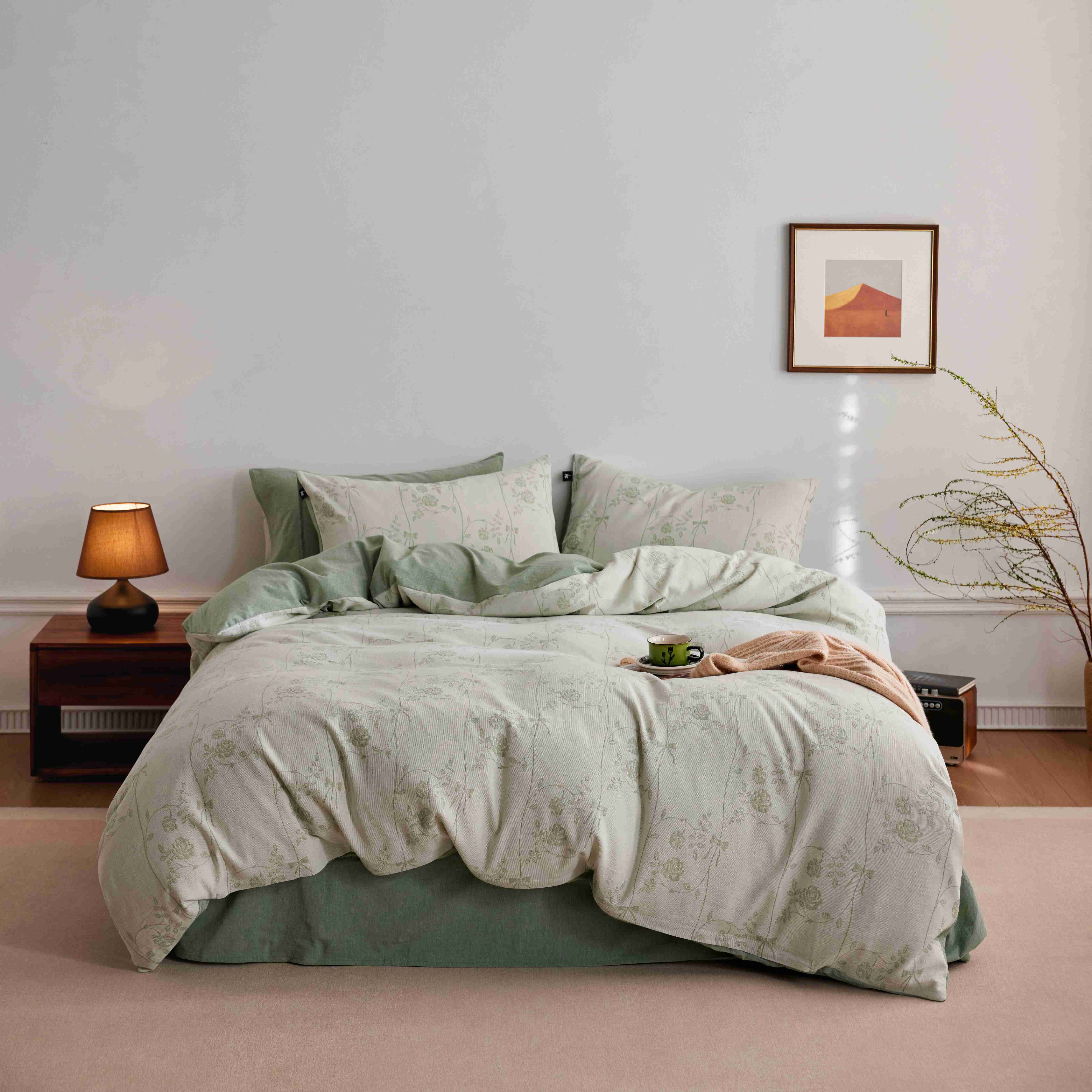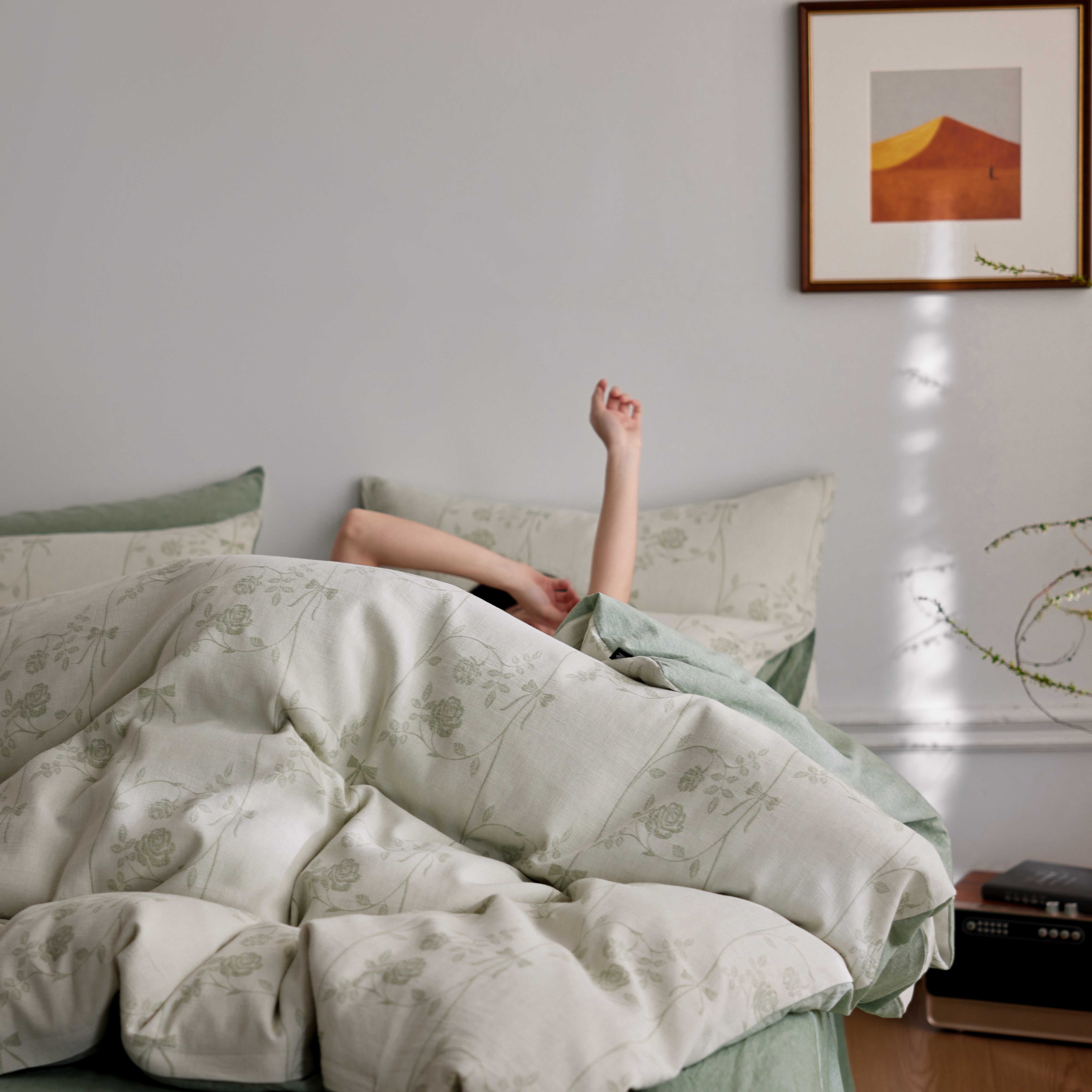 安莱生活 2025新款60s双层纱色织大提花枝上玫瑰四件套系列 枝上玫瑰-草绿