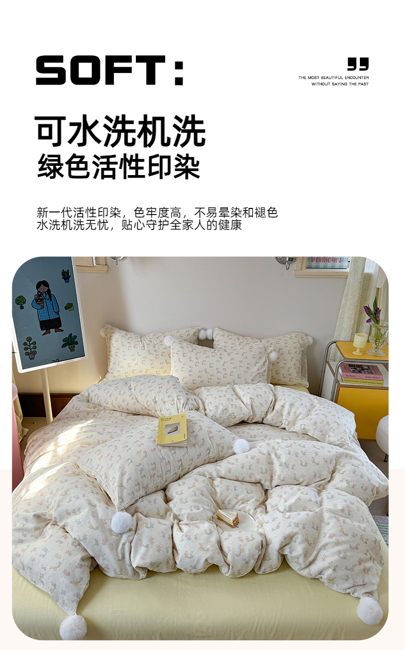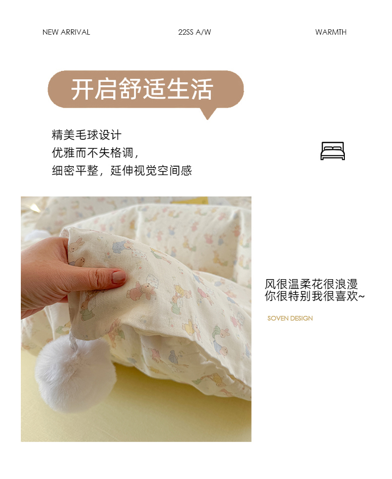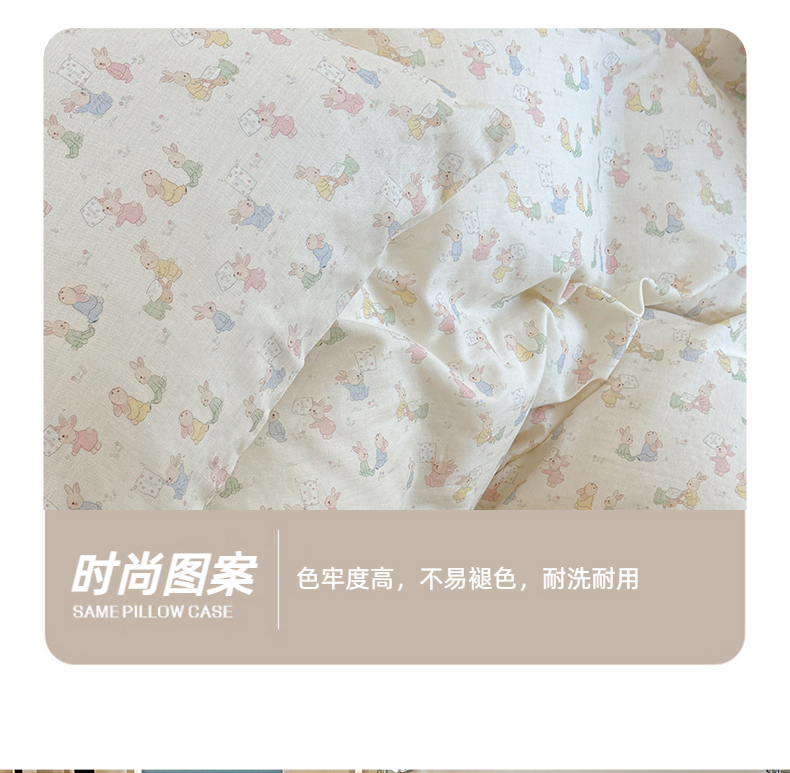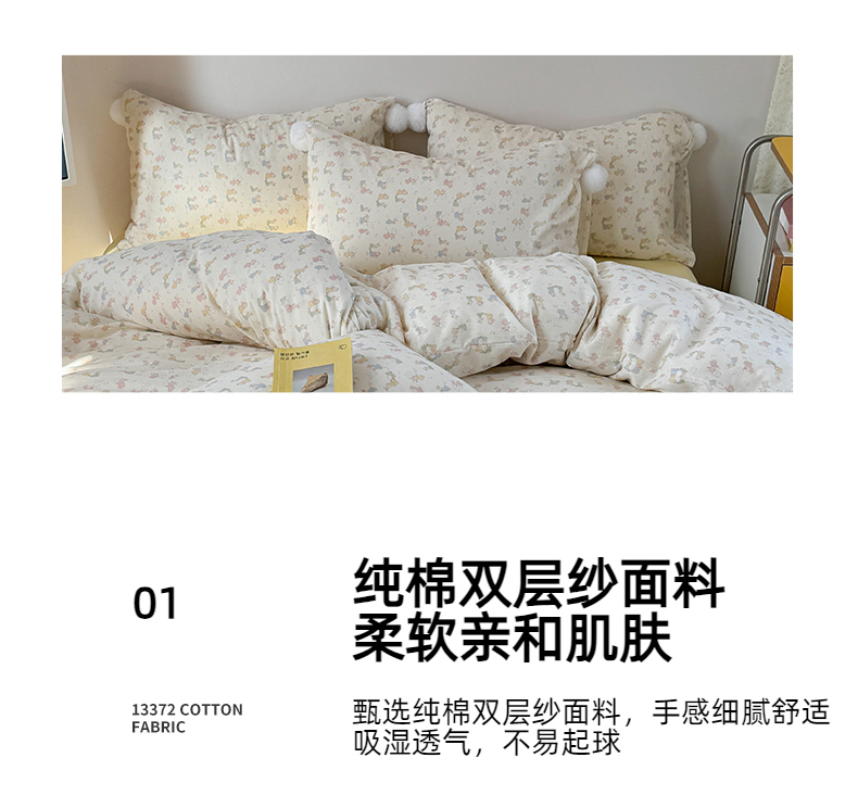 商品名称:金爱家 2025新款亲肤舒适纯棉双层纱四件套 双层纱-兔兔好朋友