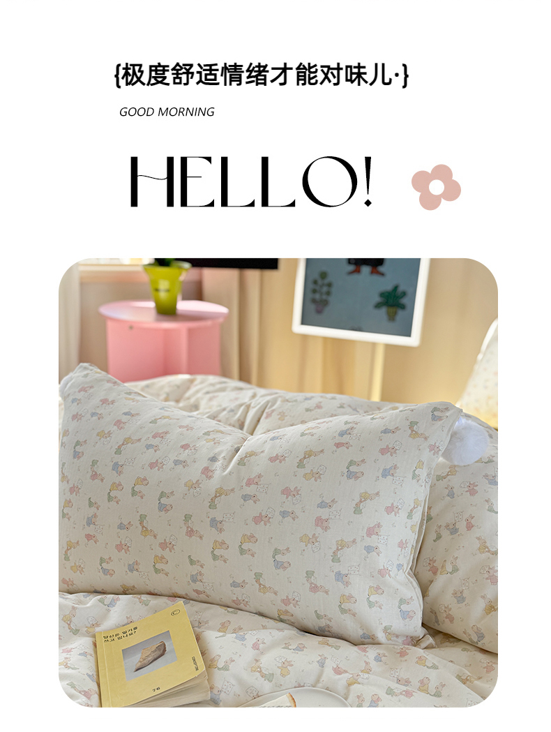 金爱家 2025新款亲肤舒适纯棉双层纱四件套 双层纱-兔兔好朋友