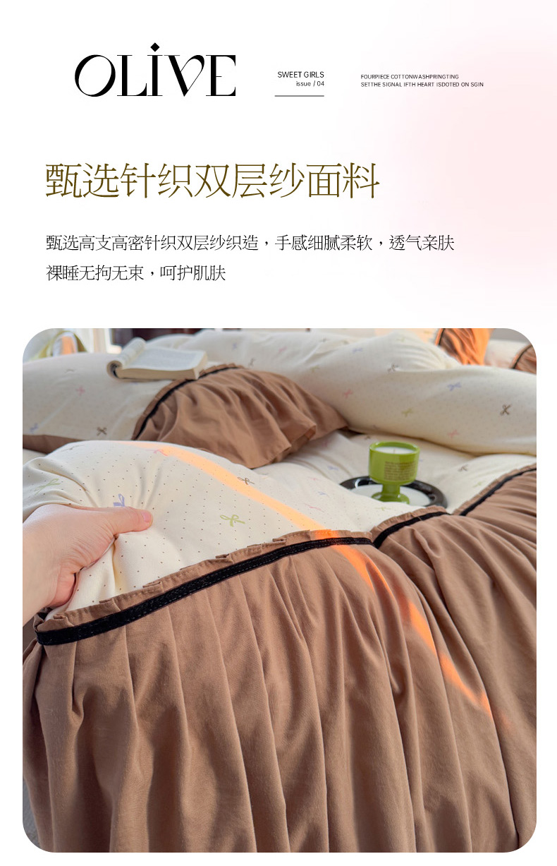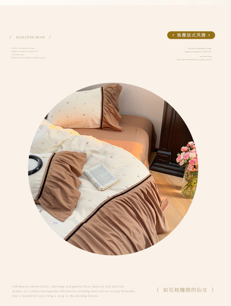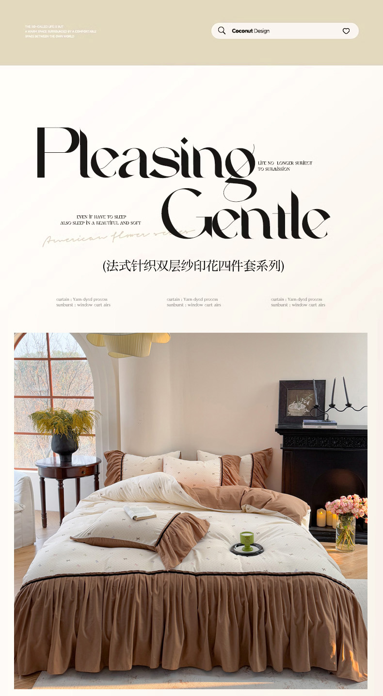当前位置: 91家纺网 > 商品网购 > 床品套件 > 四件套 > 其它四件套 > 沐慕 2025新款法式针织双层纱印花系列四件套 蝴蝶结