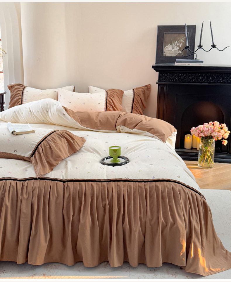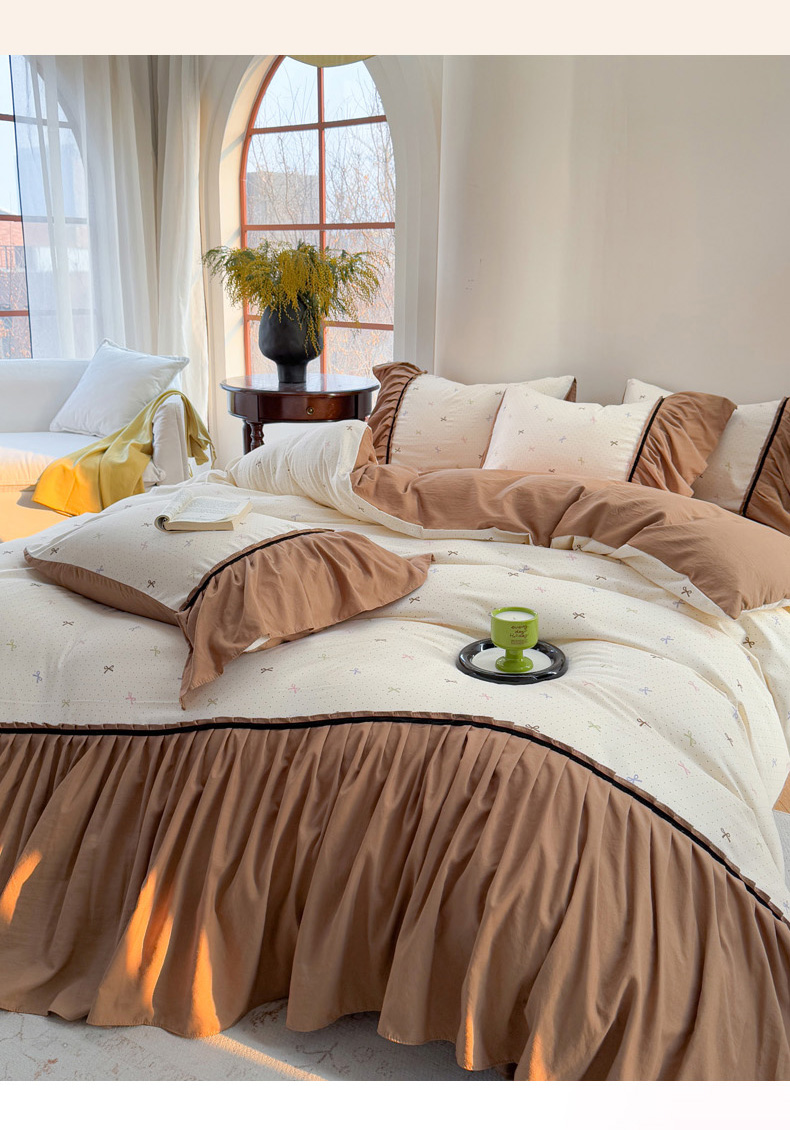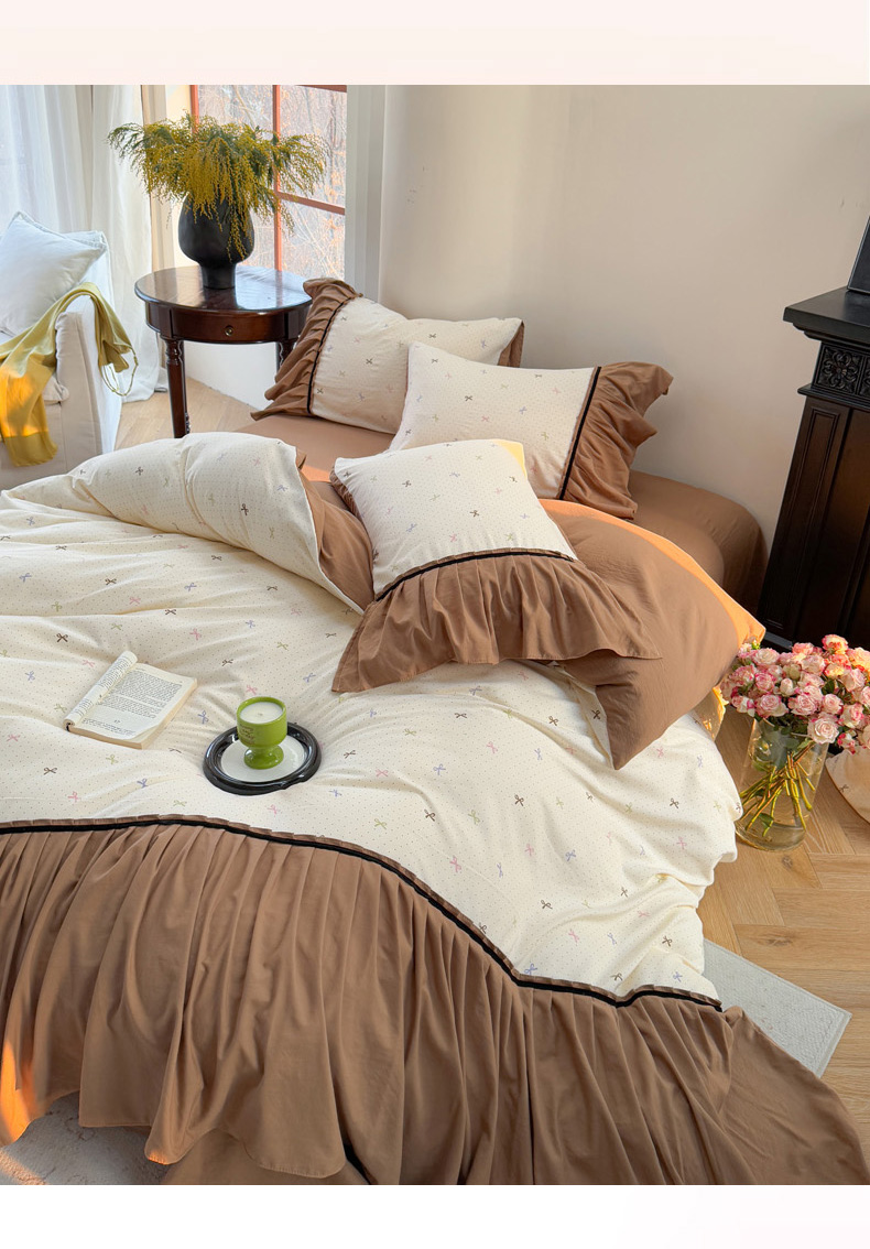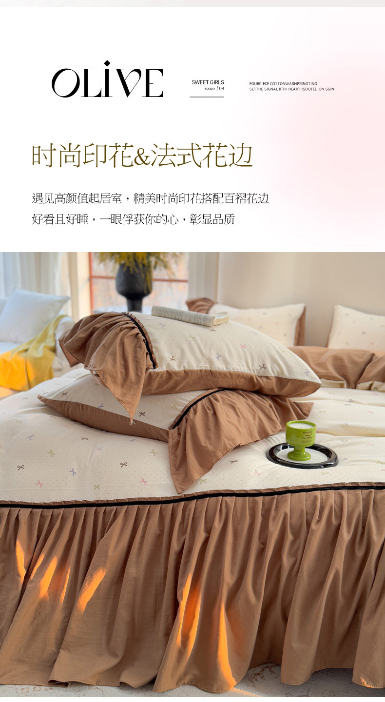 当前位置: 91家纺网 > 商品网购 > 床品套件 > 四件套 > 其它四件套 > 沐慕 2025新款法式针织双层纱印花系列四件套 蝴蝶结