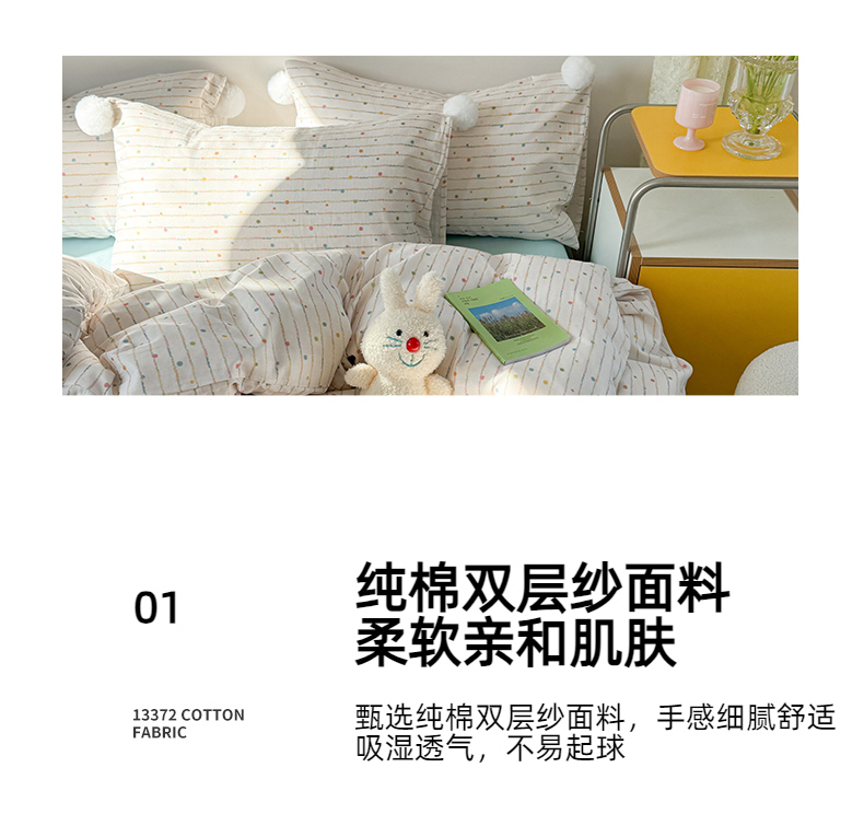 商品名称:金爱家 2025新款亲肤舒适纯棉双层纱四件套 双层纱-彩虹小甜心