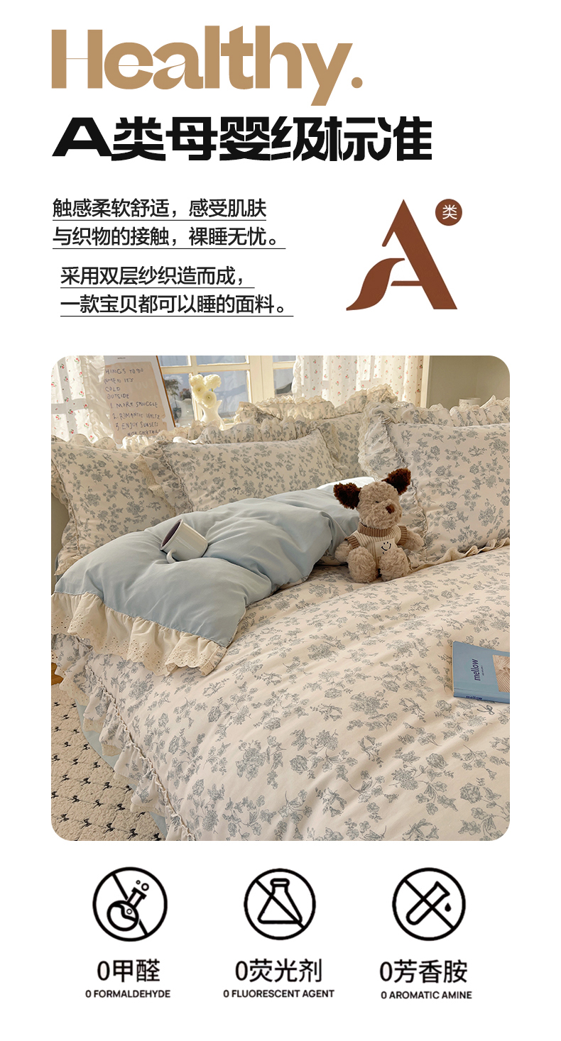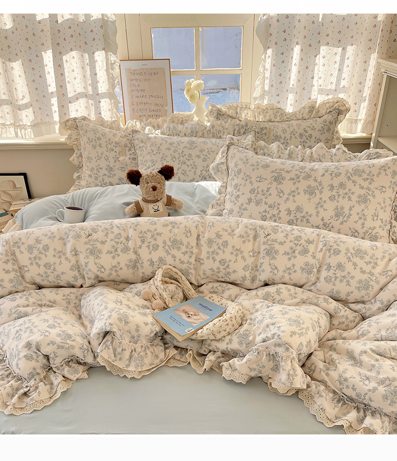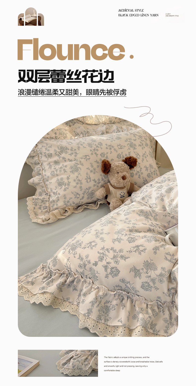 商品名称:轻奢坊 2025新款双层纱双层蕾丝花边四件套 清浅