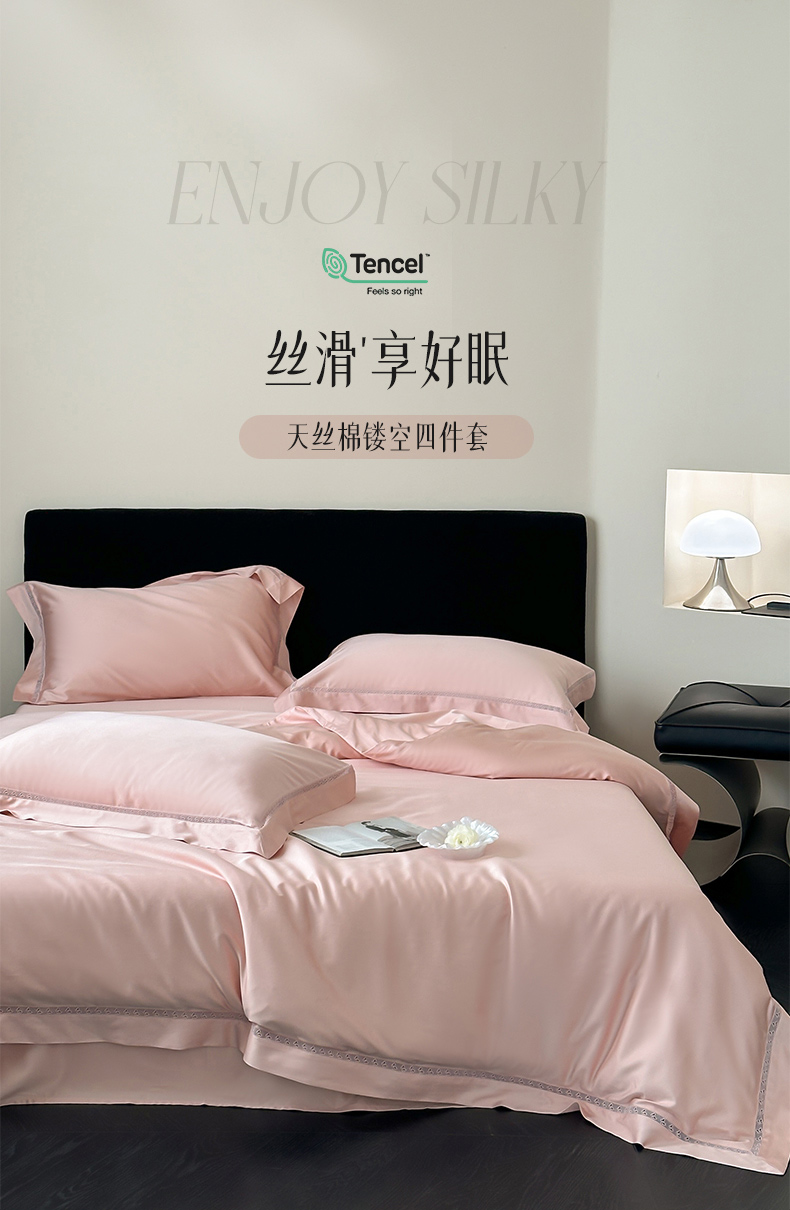 云栖家居 2025天丝棉镂空四件套-星光蝶语 星光蝶语-月影粉
