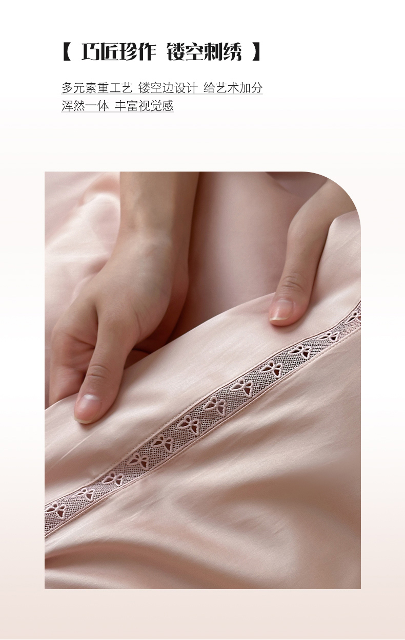 商品名称:云栖家居 2025天丝棉镂空四件套-星光蝶语 星光蝶语-月影粉