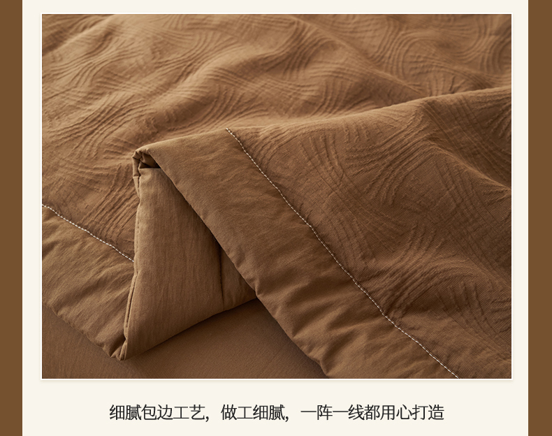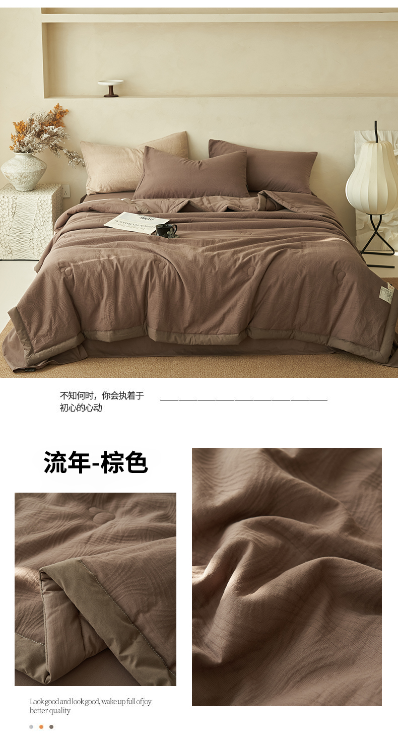 当前位置: 91家纺网 > 商品网购 > 床品套件 > 四件套 > 水洗棉四件套 > 金鹰 2025新款A类纯棉水洗棉三层流年提花大豆夏被四件套 流年-深灰