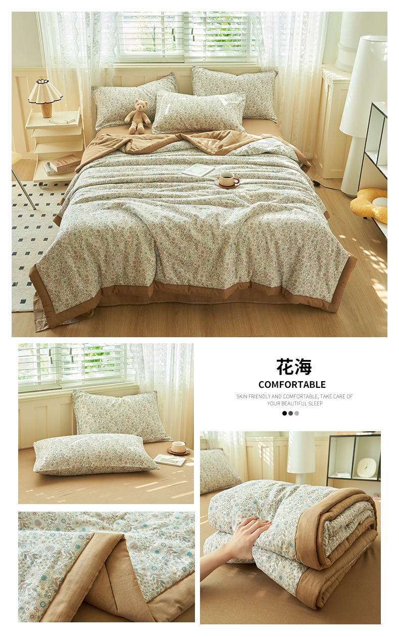 当前位置: 91家纺网 > 商品网购 > 床品套件 > 四件套 > 夏被四件套 > 金鹰 2025新款A类纯棉双层纱大豆夏被四件套全棉夏凉被空调被 玫瑰花语