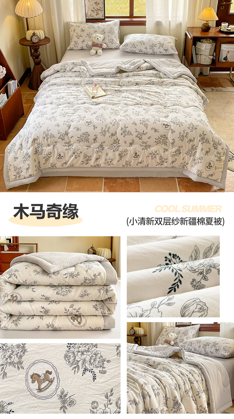 (总)易博 2025新款100% 棉花小清新双层纱新疆棉夏被夏凉被空调被棉花被(带买家秀),爱丽丝,蝶舞,动物世界,好丽友,花趣,花园兔,可爱萌宠 卡其,可爱萌宠 绿,腊肠狗,曼塔玫瑰,绵绵南瓜,木马奇缘,山茶物语,田园牧歌,熊博士,组合图仅做展示