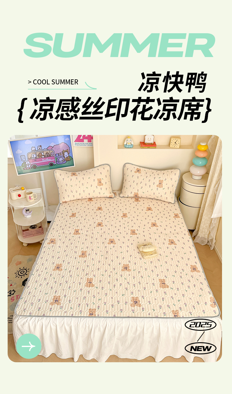 川悦生活 2025新款小阪凉感丝印花凉席 香甜小兔