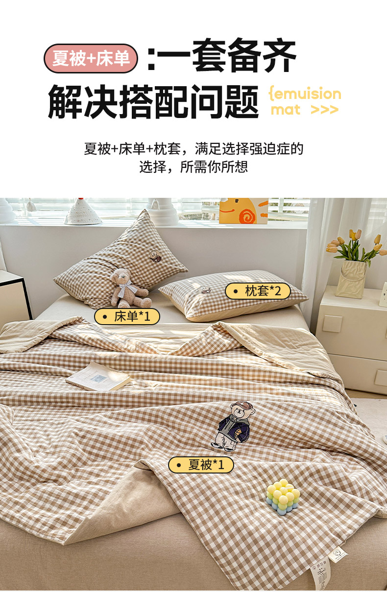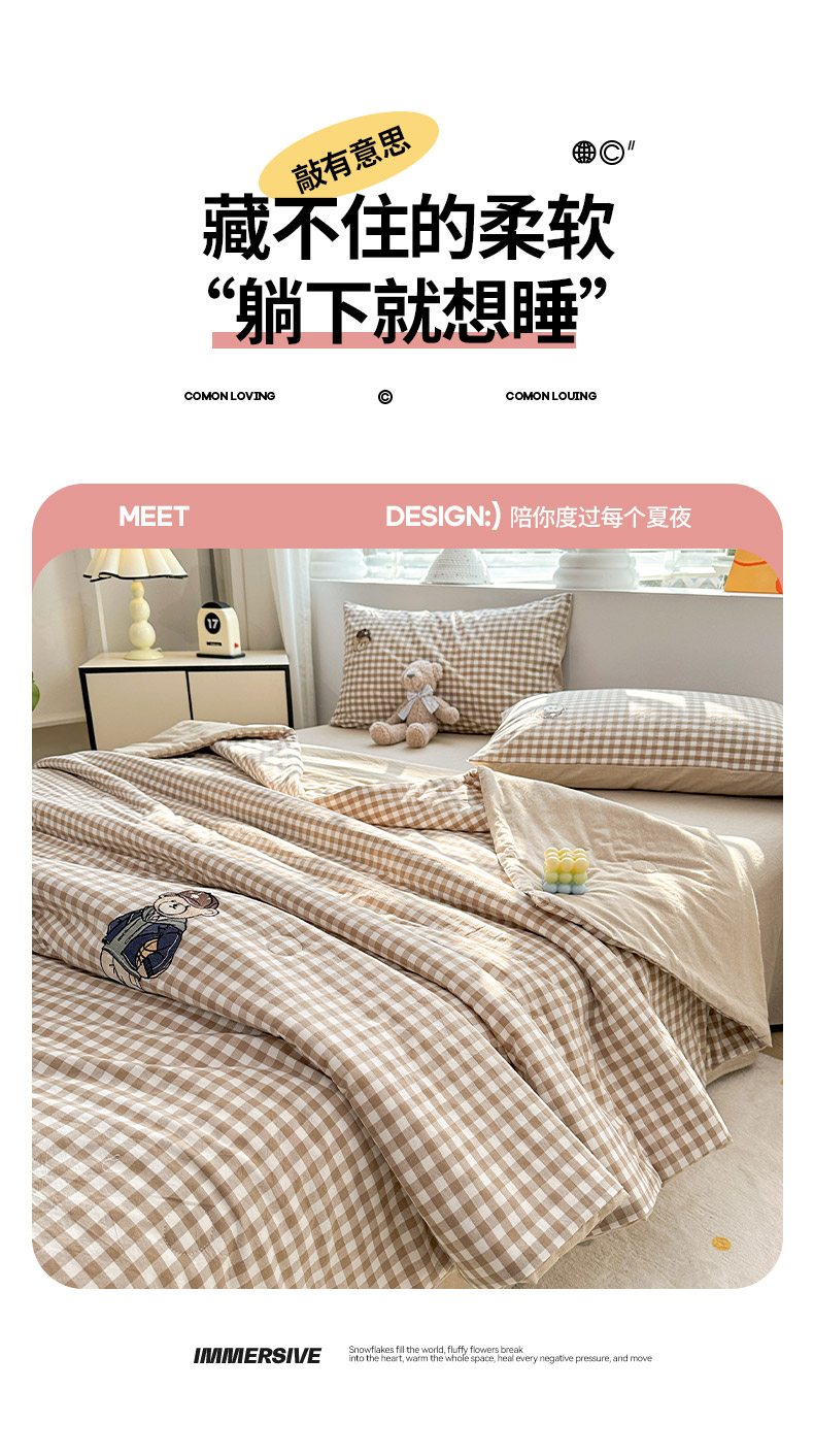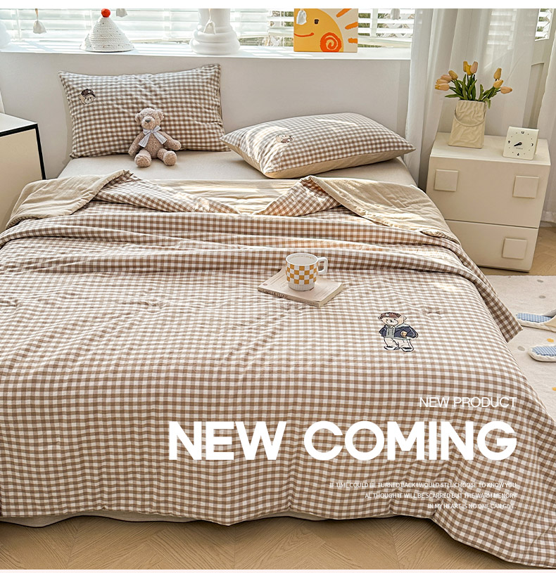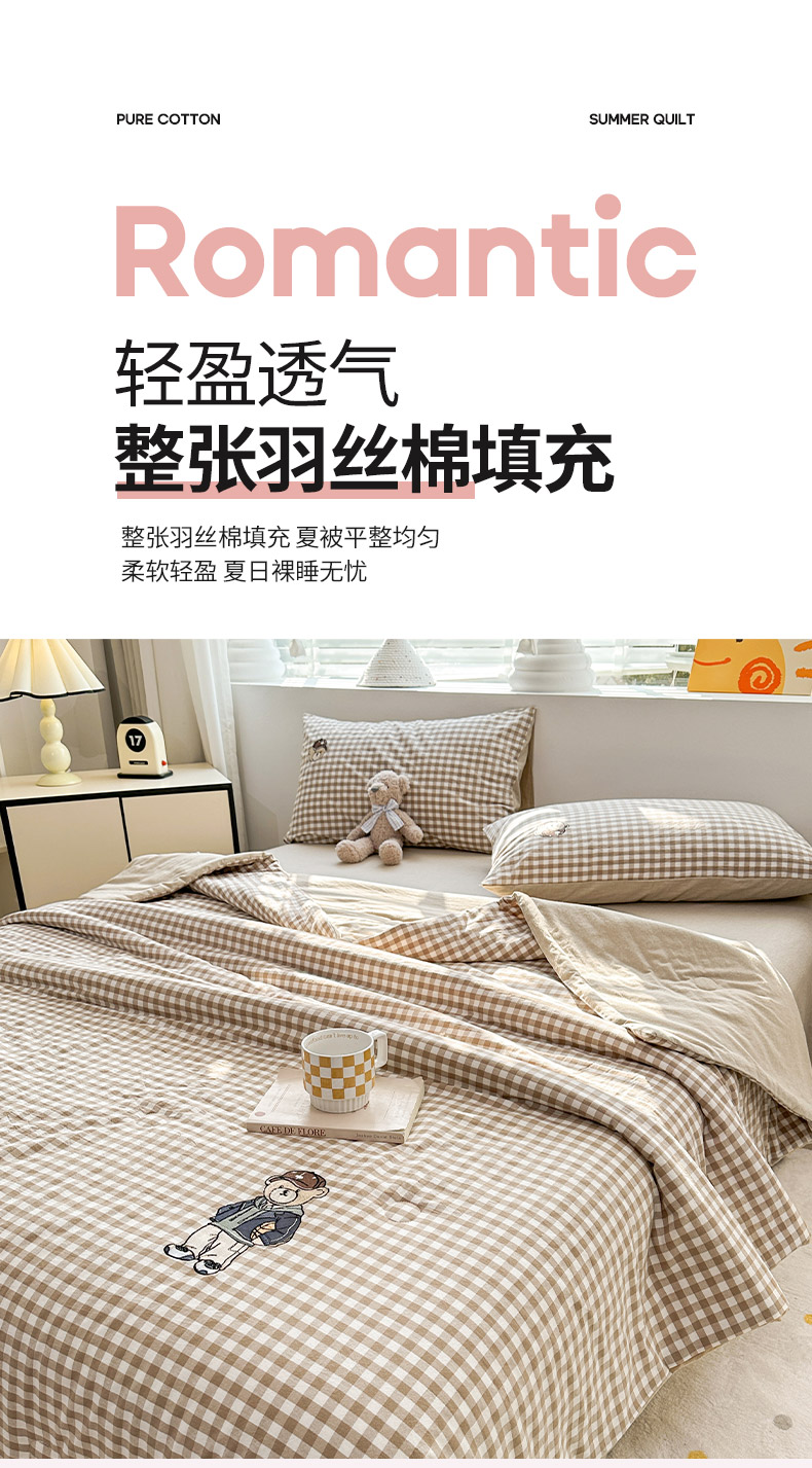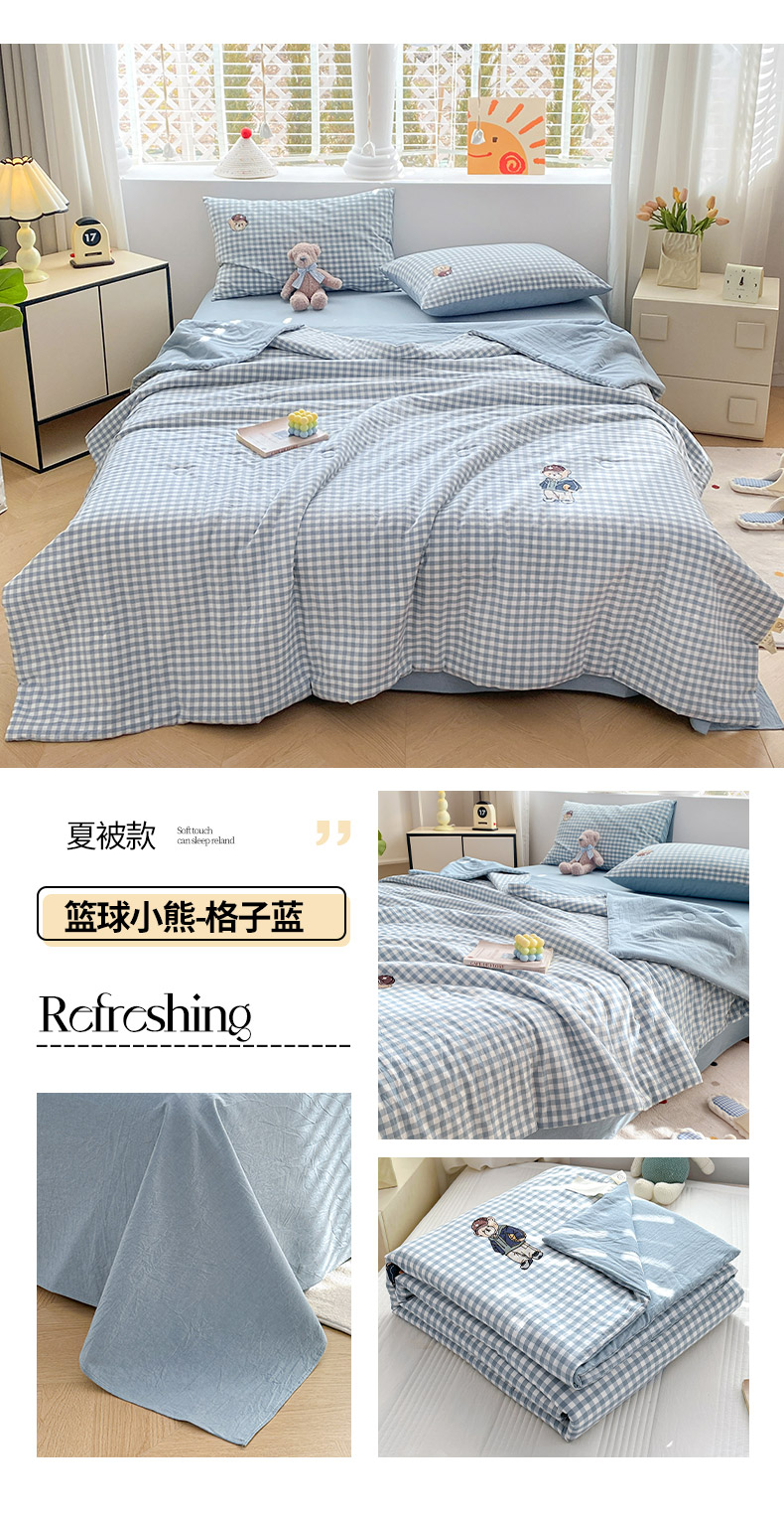 (总)大境2025新款专版纯棉色织水洗棉刺绣全棉夏被四件套夏凉被,篮球小熊-格子咖,篮球小熊-格子蓝,篮球小熊-条纹粉,篮球小熊-条纹绿,篮球小熊-细条灰