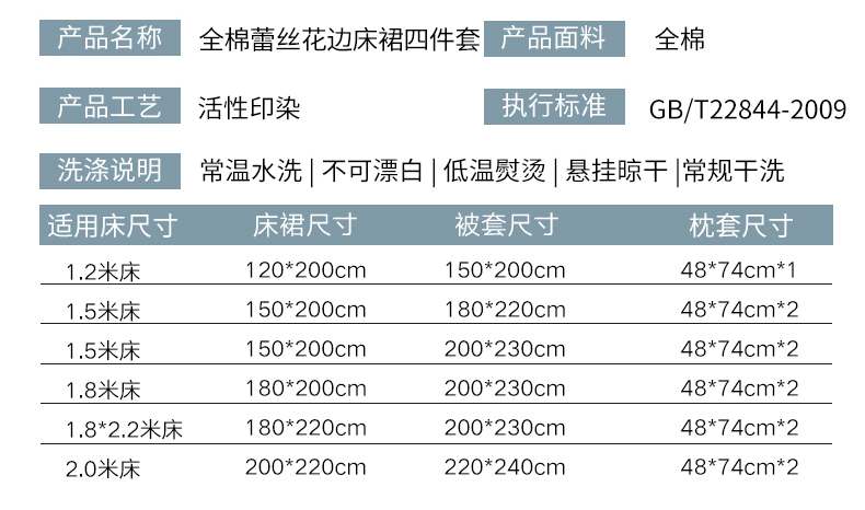 商品名称:(总)十个点 2025新款全棉纯棉蕾丝花边床裙四件套
