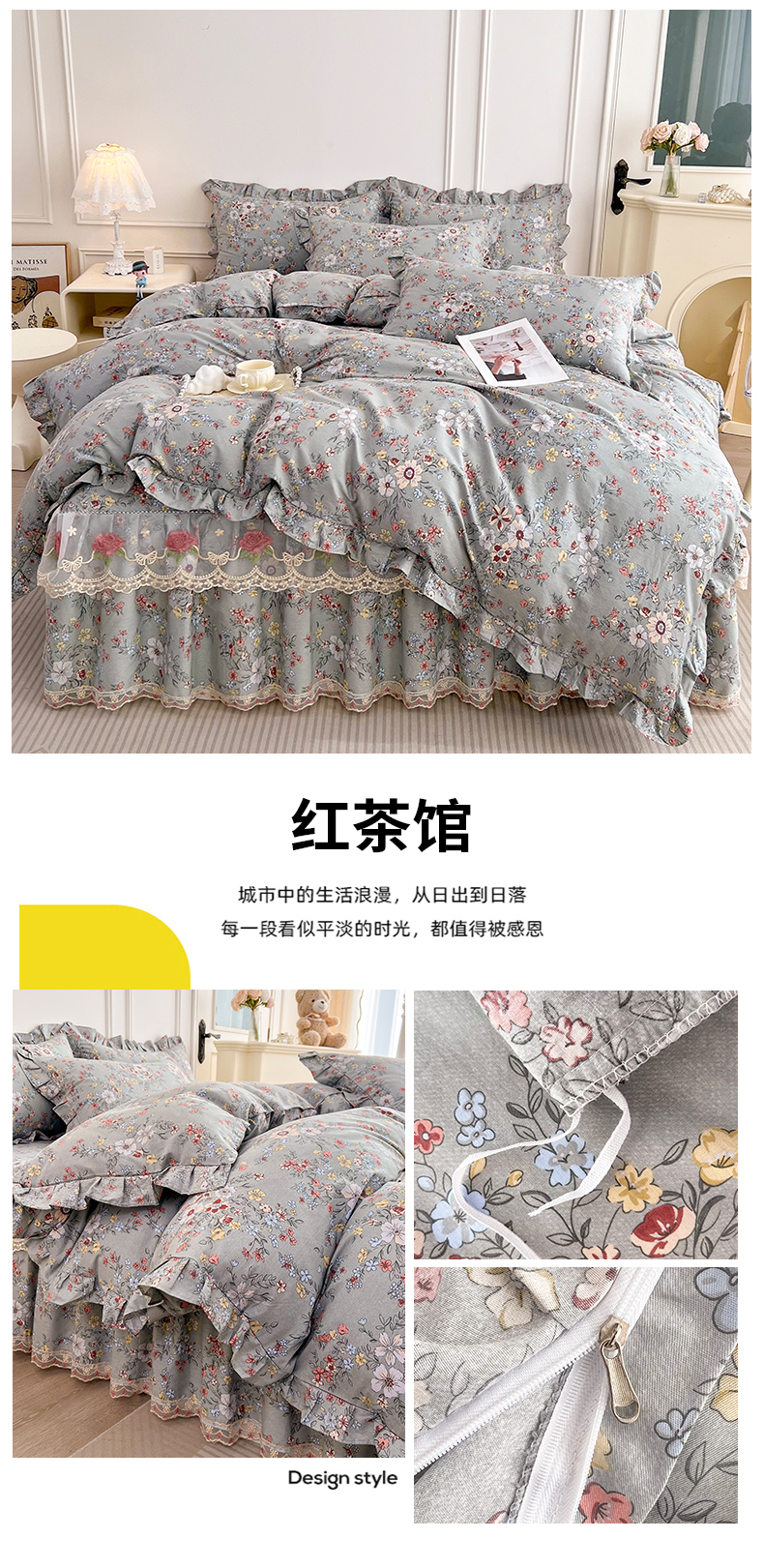 (总)十个点 2025新款全棉纯棉蕾丝花边床裙四件套