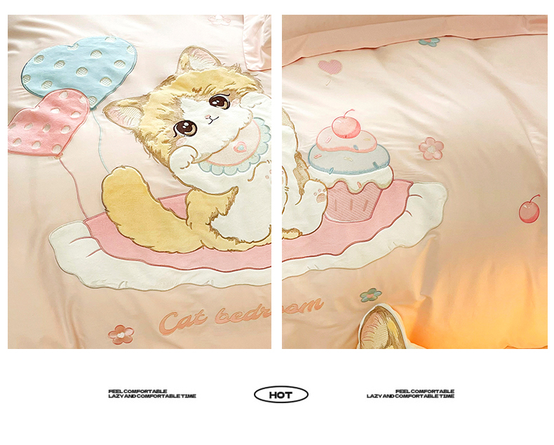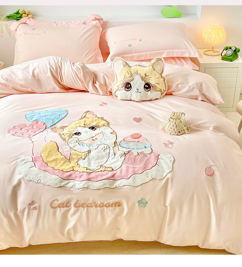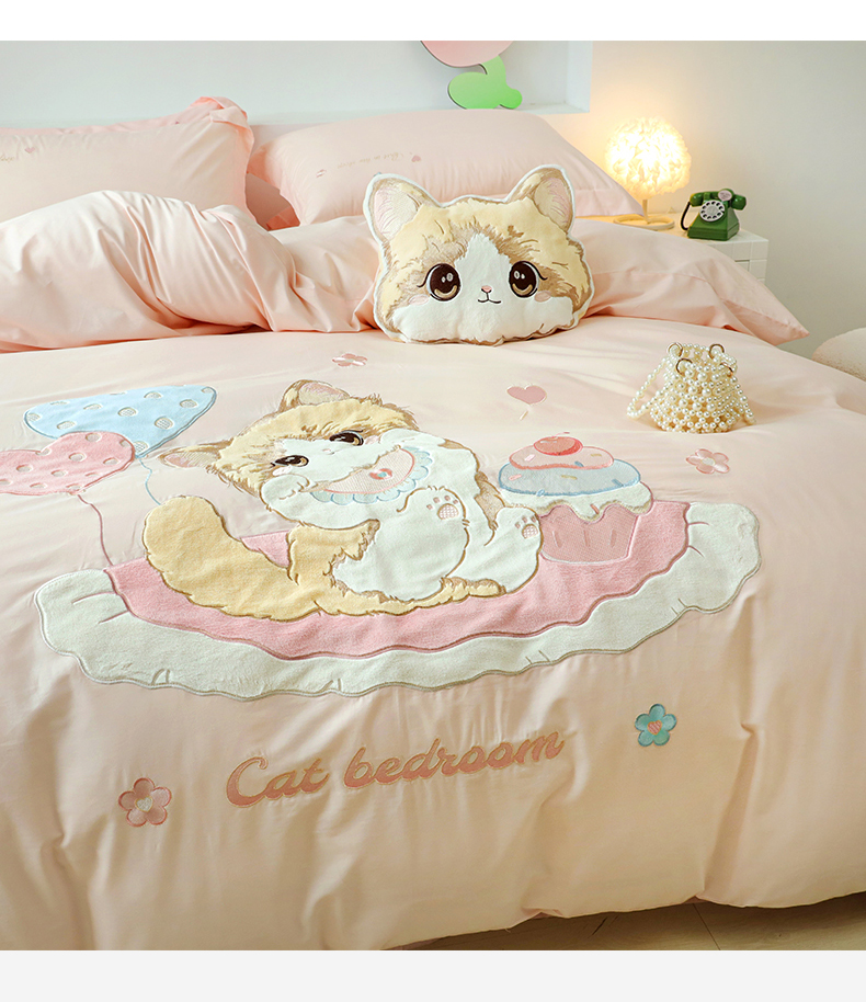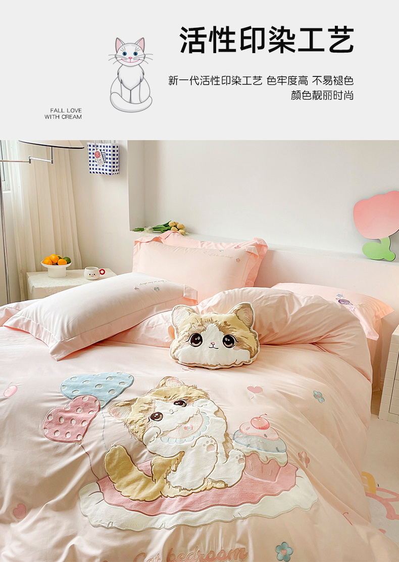 (总)金绣美居 2025全棉大版卡通贴布绣 春夏新款四件套-布偶猫